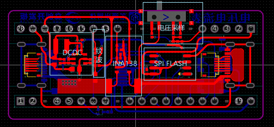 基于CW32F030C8T6地文星开发板的体积小巧的电压电流表,长2100mil(53.34mm),宽900mil(22.86mm),厚度约2cm(不算boot0排针)