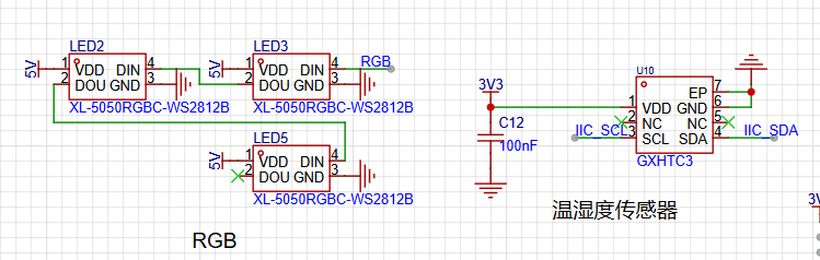 GXHTC3温湿度传感器,用于测量室温与湿度;WS2812 RGB灯;