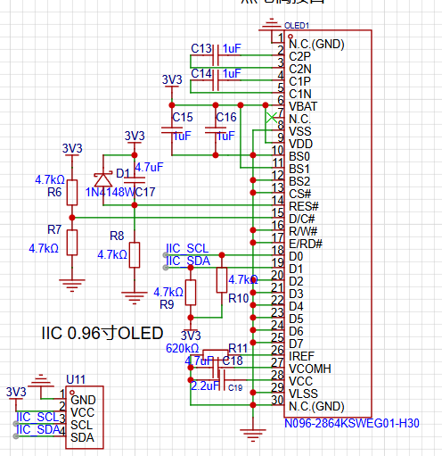 IIC OLED显示屏,用于显示温湿度以及天气等等;一个拨轮用于控制显示。