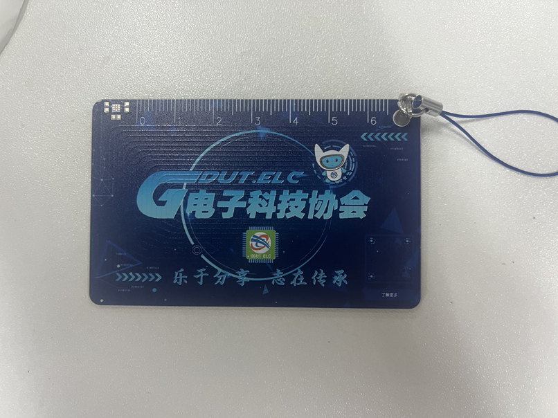 丝印和走线正面按照广东工业大学大学城校区地图设计,可配合LED使用,在刷卡时让代表楼栋的led亮起来,背面为6cm尺子与装饰丝印,整体板子兼顾实用性和美观性。