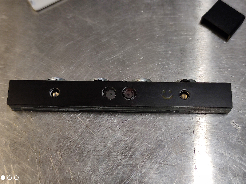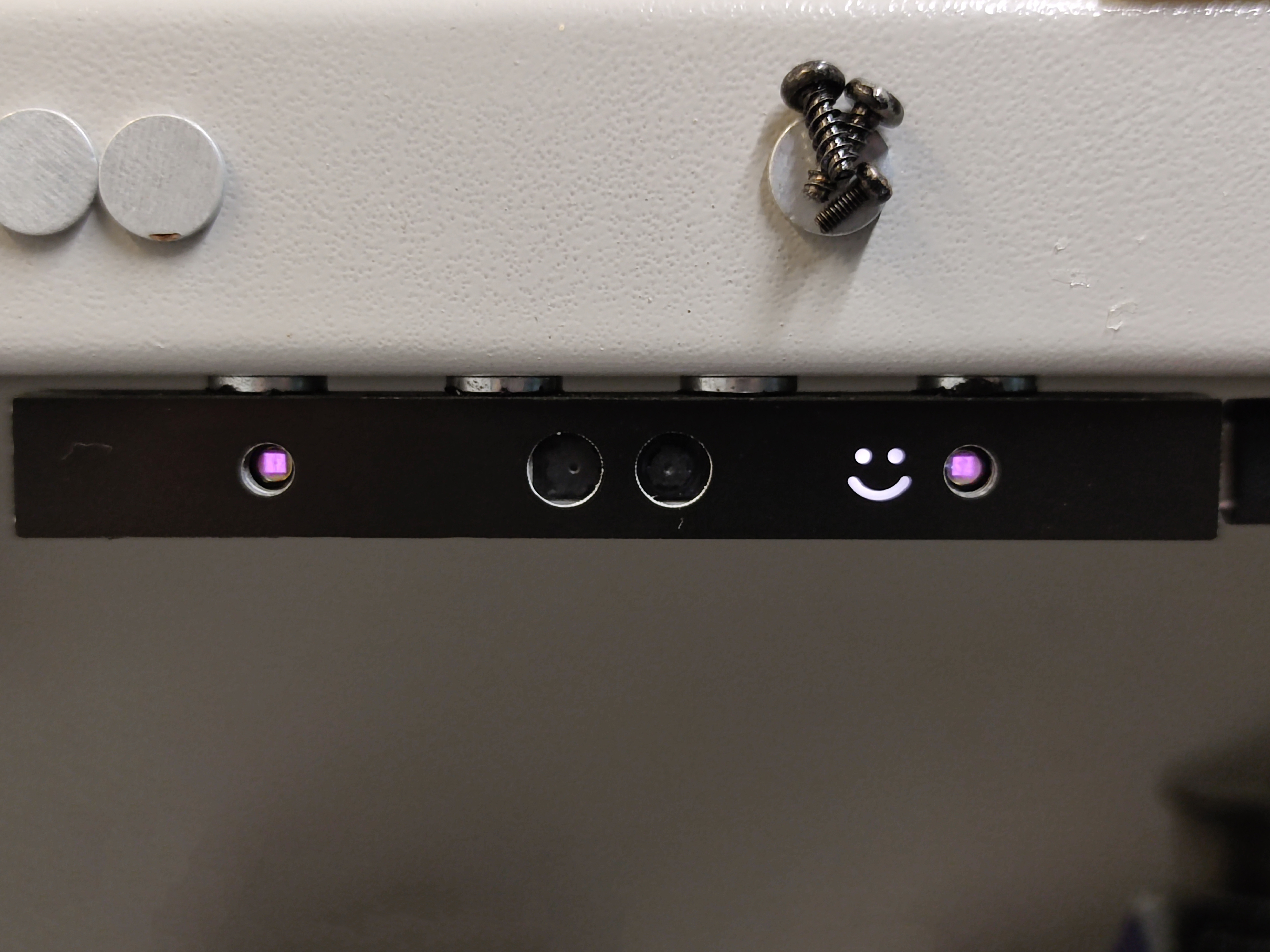 然后粘上前面板(上面四颗圆形的是磁铁,用来像封面图一样吸在铁桌子上的):