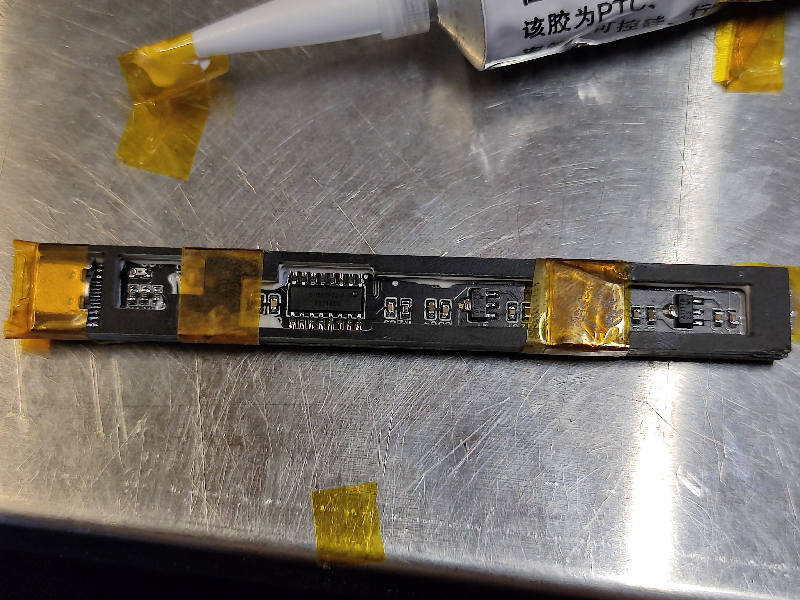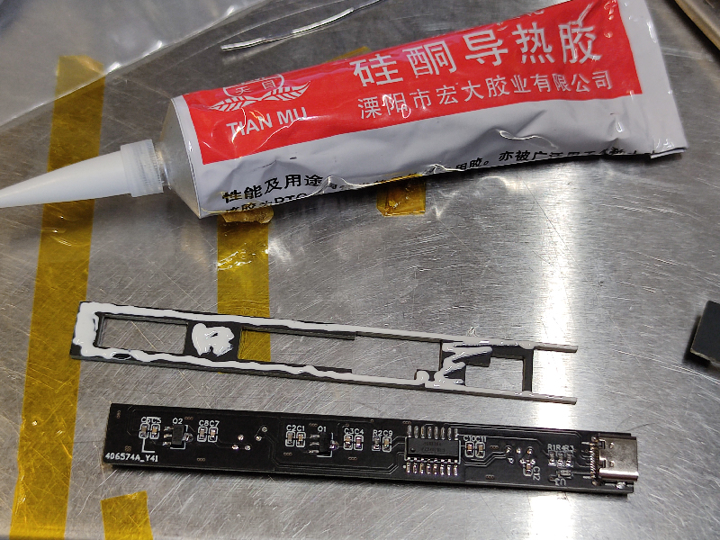 胶水流的到处都是,干脆把后面凹槽全灌满了导热胶: