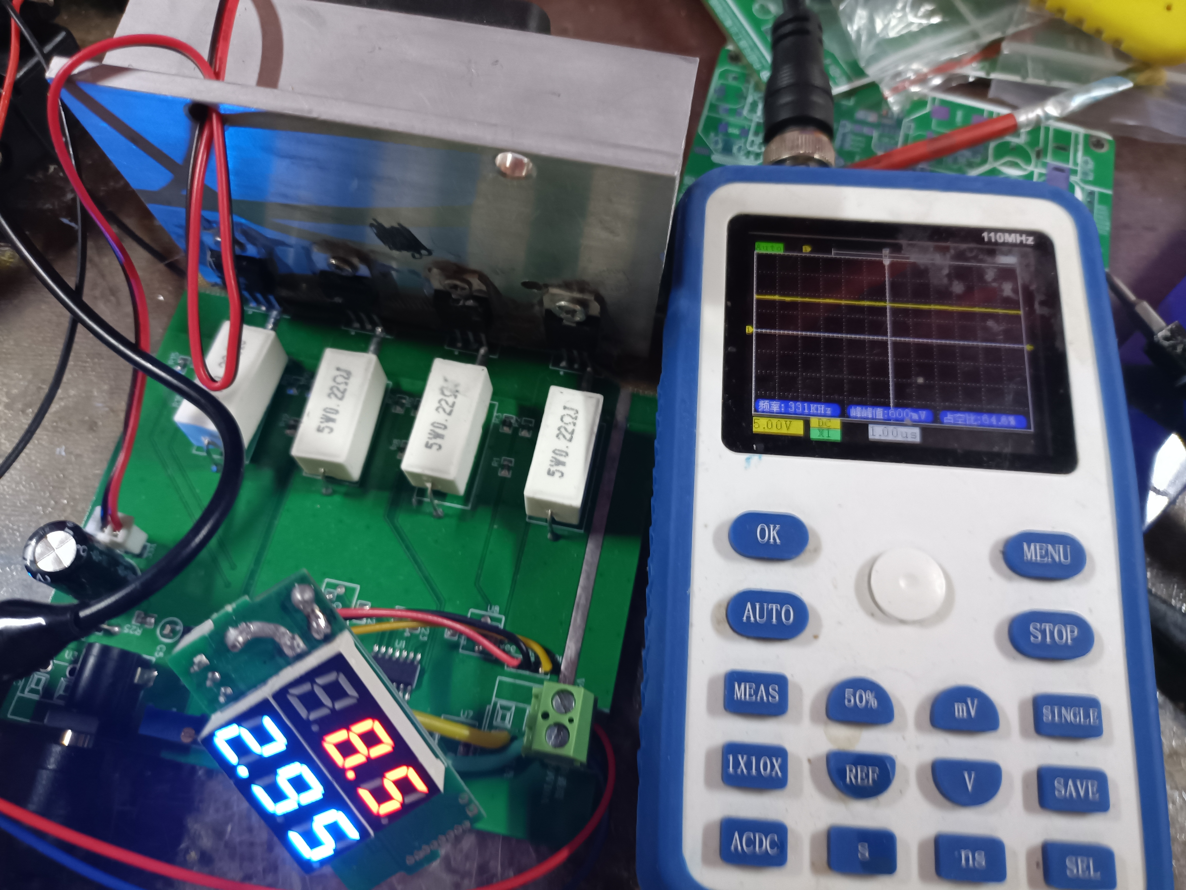 进行3A负载下的纹波测试,表现极好,驱动波形忘了测了,理论上是250KHZ