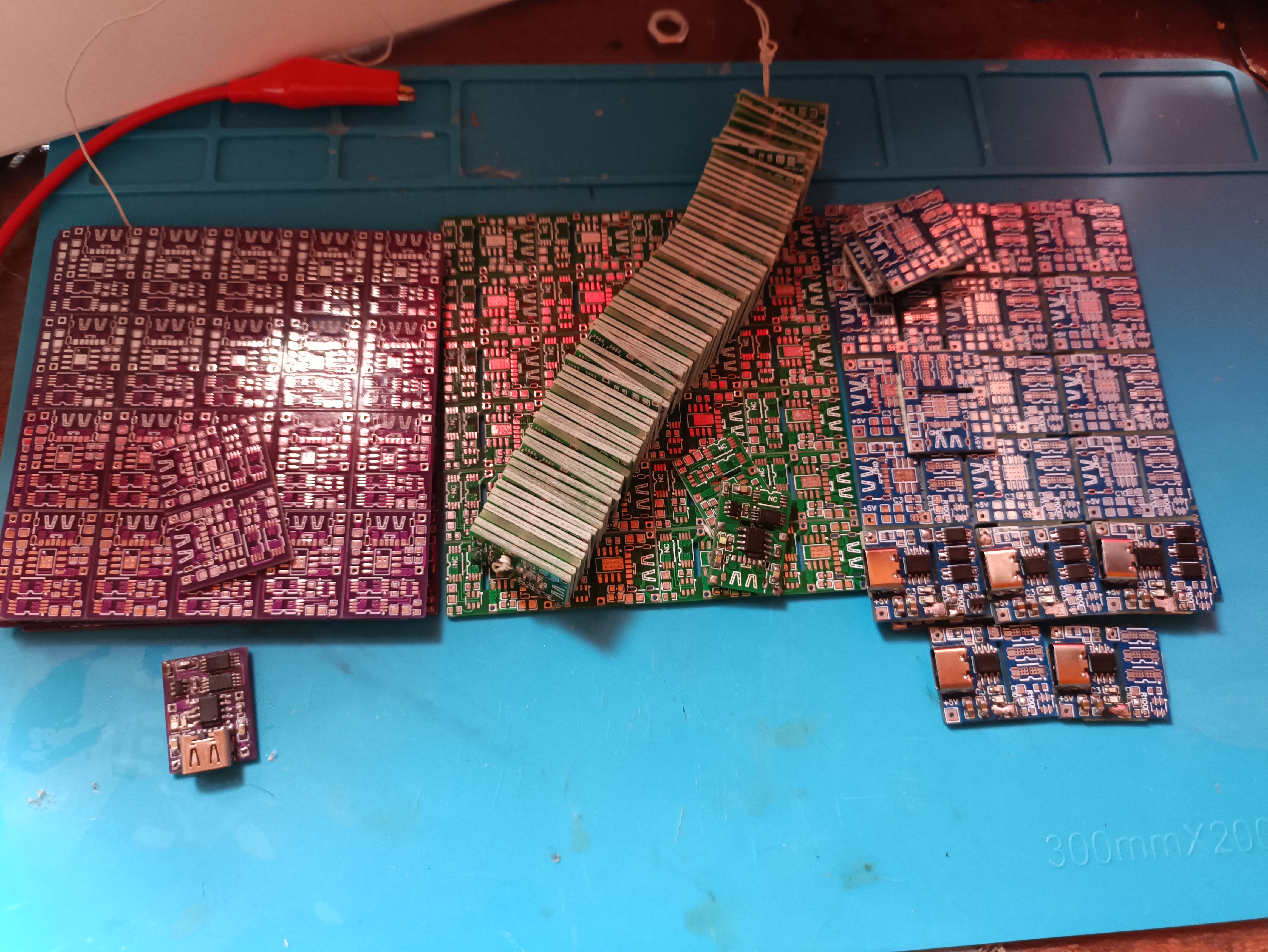 至于第一版呢....是那个紫色的,因为制造前没检查DRC,保护板有线重合导致短路,无法使用,故损失三十多(但是收货120个充电器)