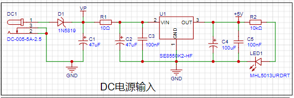 本项目使用LDO作为电源,考虑到实际的电压表头产品多在24V或36V供电的工业场景中应用,本项目选择了最高输入电压高达40V的SE8550K2作为电源。本项目没有使用DCDC降压电路来应对大压差的主要原因为避免设计过程中引入DCDC的纹波干扰,次要原因为降低项目成本。