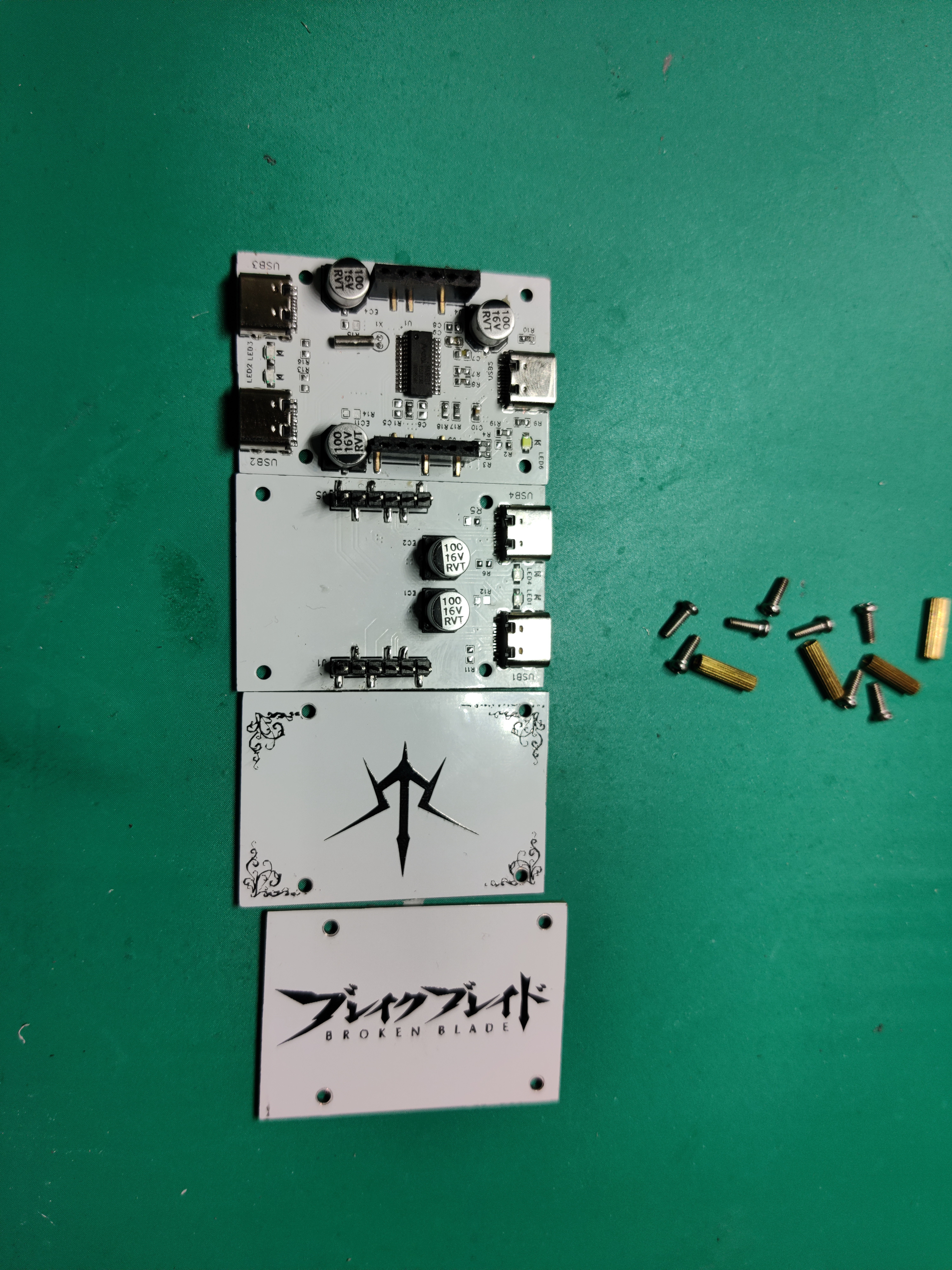 专用USB-HUB。 输入为TYPE-C 输出TYPE-C*4。 为的是解决有时候电脑USB端口不够用且数据线不会被接来接去(自己做的数据线 别人基本用不了)。