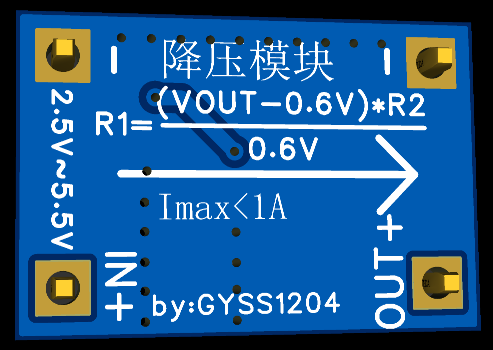简介:使用SY8008/SY8088芯片的超小DCDC降压模块,尺寸16x11mm,输入电压2.5V~5.5V,最大电流1A,排针孔距兼容洞洞板。开源协议