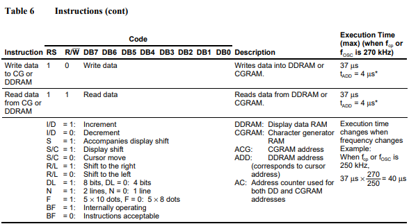 想要LCD1602设置4bit模式,需要向1602发送0010 1000,就是0x28命令;但是1602默认是8bit模式,所以要以8bit模式发送,因为只接了d4-d7,所以1602只接收到高4位0x20,这样虽然被设置4bit模式,但是低4位没有收到,后面还需要用4bit模式再发送一遍,后面的所有数据和命令都可以用4bit模式发送了.4bit模式就是先发送高4 位,然后发送低4位,两次发送一字节.