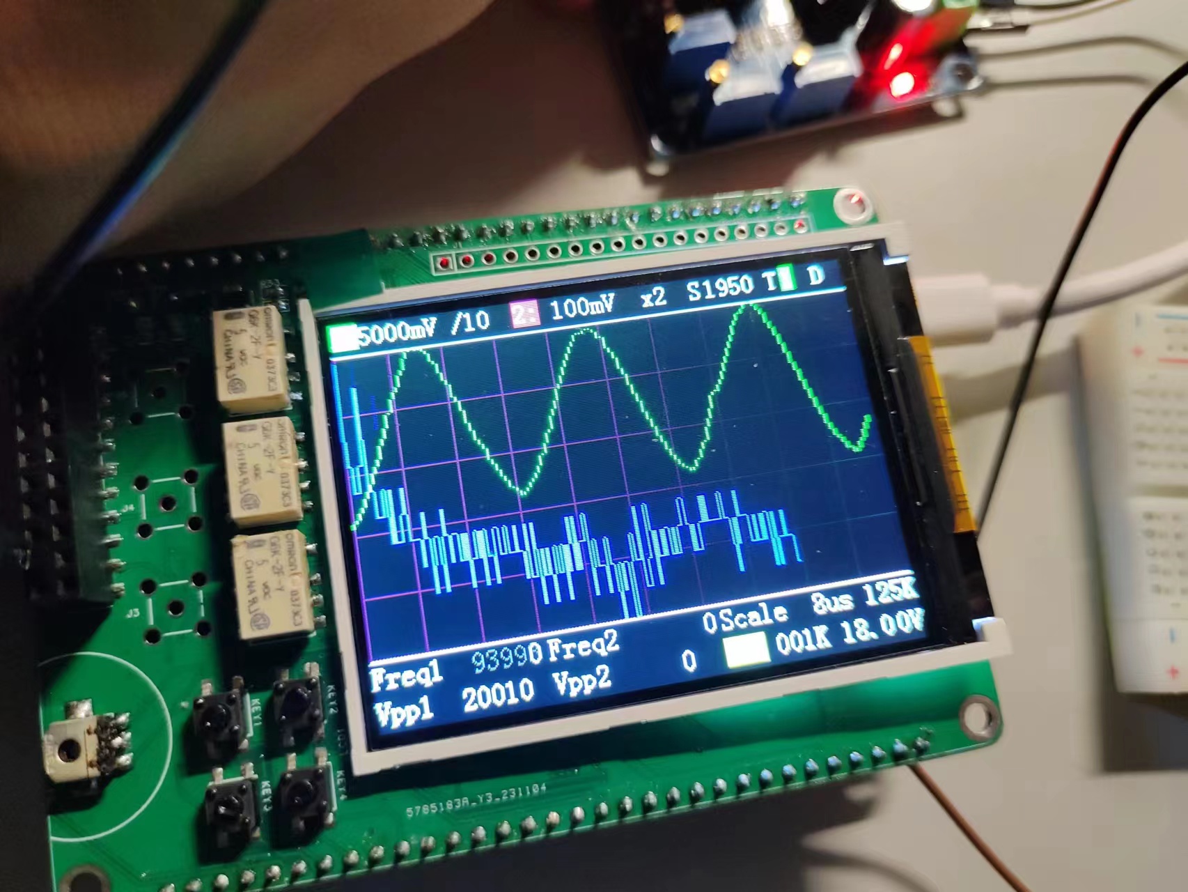 最后测试的时候,可以弄一个信号发生器,用自己做的示波器和专业的示波器一起测,看波形的偏差。
