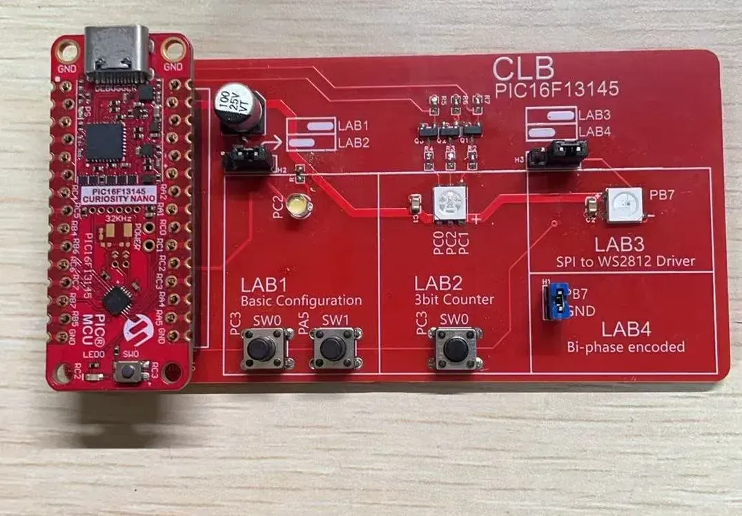 可以用这个板子配合PIC16F13145好奇板,来学习CLB外设的使用方法。