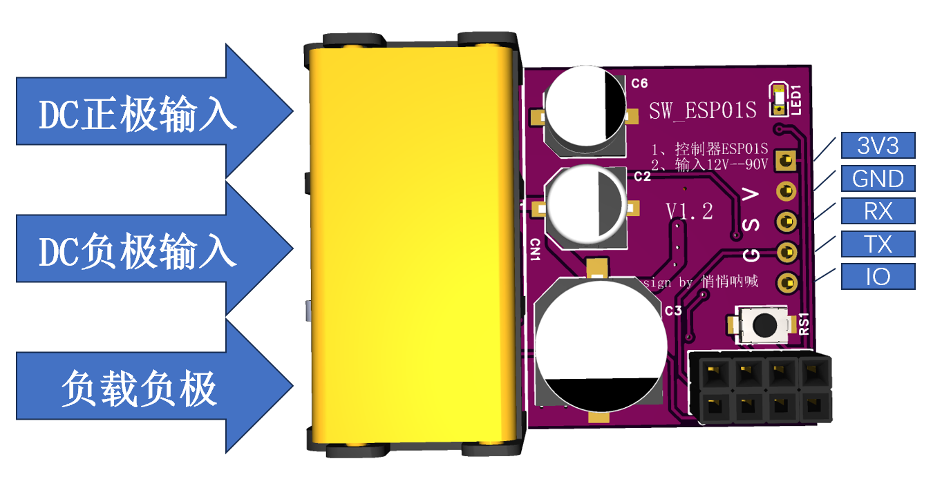 使用DCDC提供12V电源,用于控制MOS管开关,同时用LDO为ESP01S提供工作电源。ESP01S的IO0引脚控制MOS管开关,低电平MOS管导通,高电平MOS管关闭。