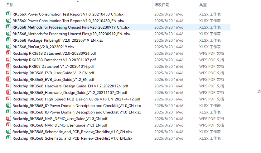 内存方面为了简化设计,我们使用一片 LPDDR4X 芯片(RK3568 最大支持 8GB 内存),硬盘我们使用 EMMC 方案,另外引出了 SD 卡,方便快速验证系统设计,WIFI 其他的具体设计我们等到下一节再详细介绍。总而言之,外围电路的设计优先参考市场上的成熟方案,最好是你自己用过或者见到过的方案,这样可以避免一些奇奇怪怪的兼容性问题。