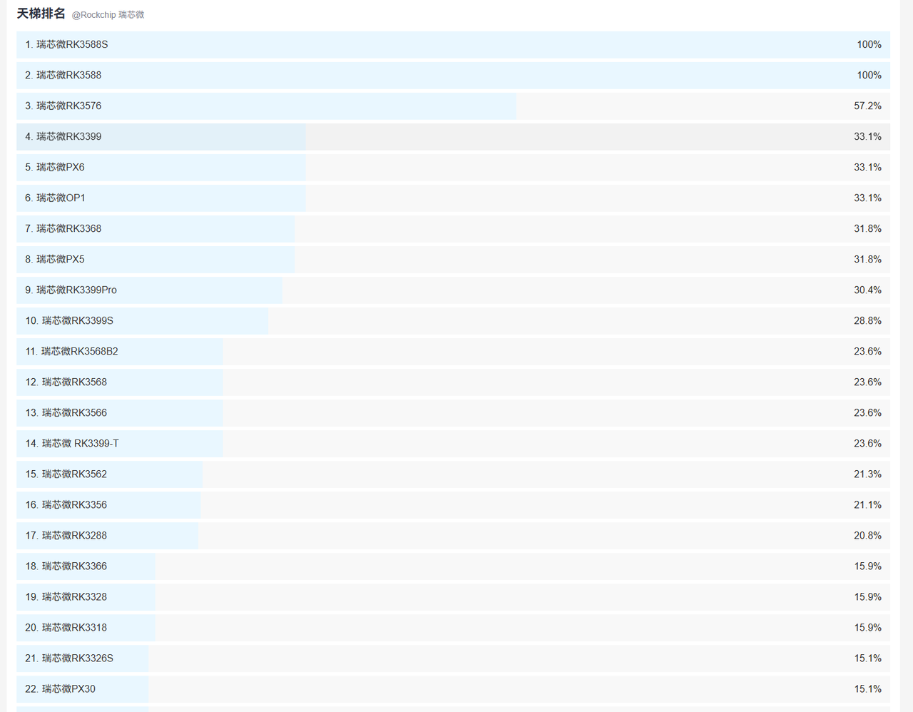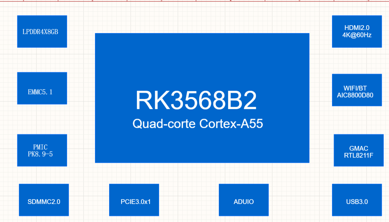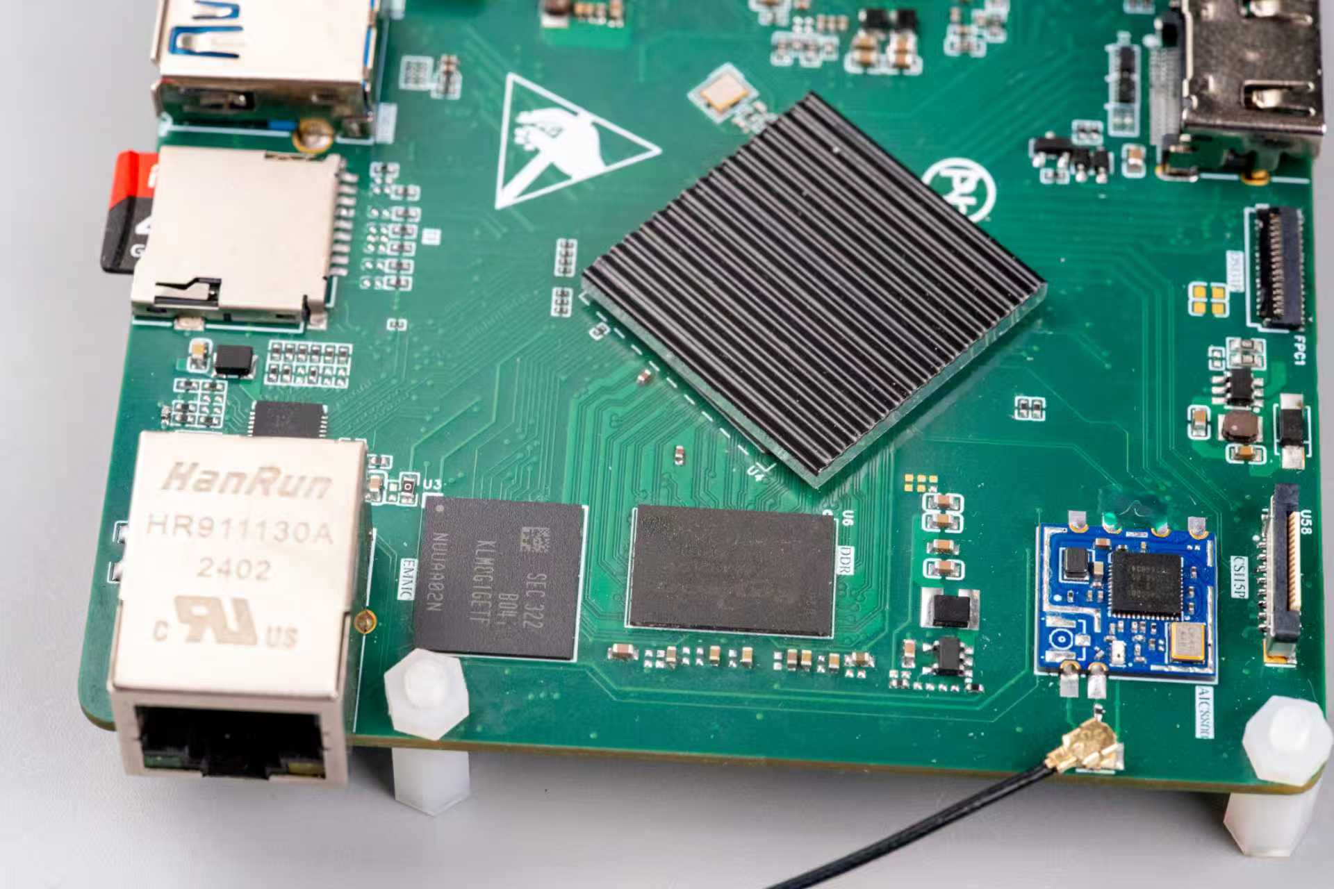 上图是我随便找了一款电视盒子,其他的设备布局也大同小异,我们就以这块板子来介绍。中间那块黑色硕大的芯片就是主控 SOC,里面集成了 CPU,GPU,DDR 控制器,以太网控制器等等,在整个系统中起到最核心的控制作用。从主控芯片引出了很多很多的线,接到了很多黑色的小芯片上(当然这是一块多层板,还有些走线隐藏在 PCB 内层)。下方的两个长条的芯片就是 DDR 内存,负责在运行时和主控之间的高速数据交换。这个高速到底有多高呢?一般来说 DDR3 的时钟速度为 833MHz,由于 DDR 本身会在时钟的上升沿和下降沿同时采样,所以数据线的速度可达 1866MHz,而采用 LPDDR5 的芯片,则可以达到 6400MHz 以上。为了实现这么高的速率,对 PCB 的设计也是有很高要求的,这也是我们本次设计的一个核心难点。主控左边是一块 EMMC 的存储芯片,负责存储系统文件,可以在断电后保存数据。其他的我们还会看到各种各样的接口,比如网口,可以通过他来接入到互联网。USB 口,可以扩展其他设备。通过以上介绍,我们对嵌入式板卡有了一个大概的了解。可能有朋友在大学里面学过计算机组成原理,嵌入式板卡就属于这么一种微型计算机系统,接下来进入核心主控的选型。