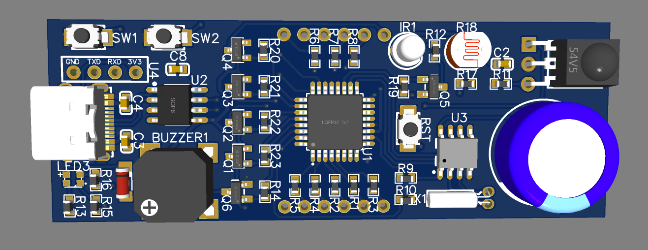5.板载一个红外接收管,可以接收红外编码,功能可以自己发挥