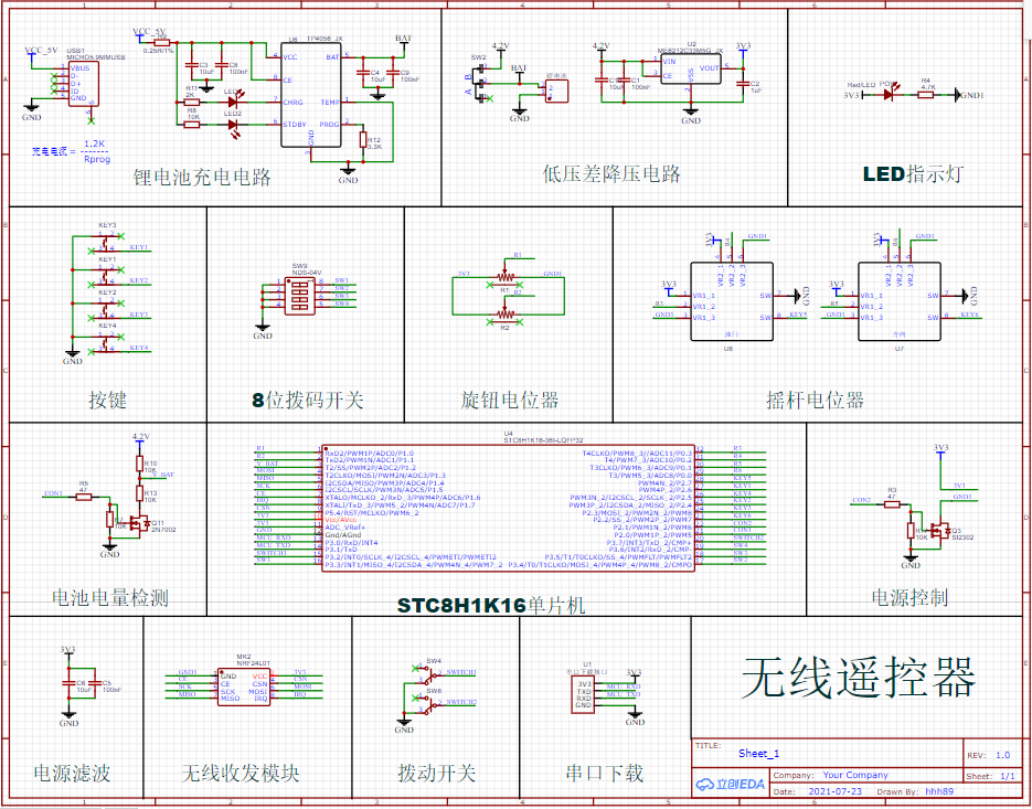 基于STC8H1K16,NRF24L01的无线遥控器,实测控制还是很灵敏的,有需要的同学可以参考