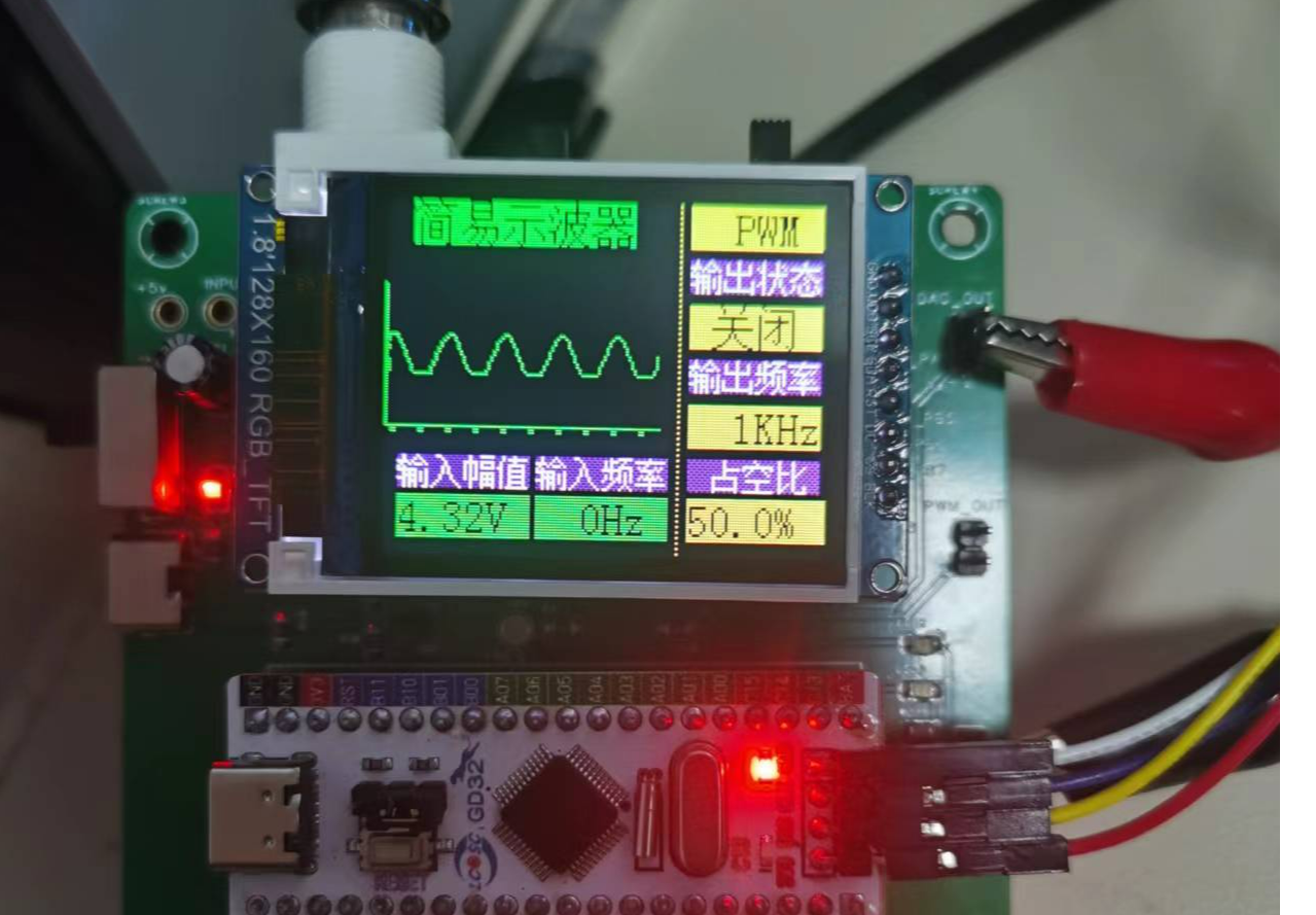 基于GD32的简易数字示波器,在立创提供的模板基础上,增加了一个MCP4725芯片,用于生成波形