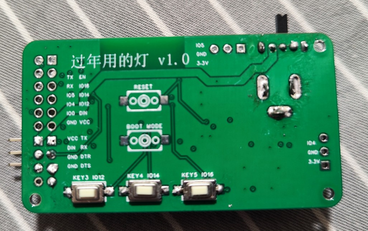 画PCB的时候,我问我家娃,写个什么字在上面好呢,他说,就写“过年用的灯”。于是就有了这么奇怪的丝印。