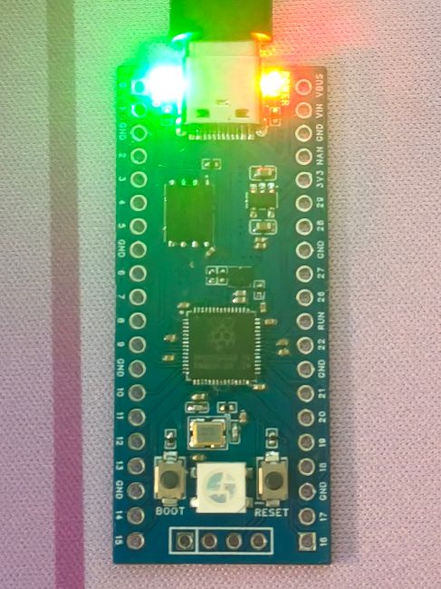 使用Type C接口,板载16MB Flash,带电源指示灯、接在GPIO25的LED灯(Blink例程默认引脚)以及一颗RGB灯珠。已经过上电+程序验证。