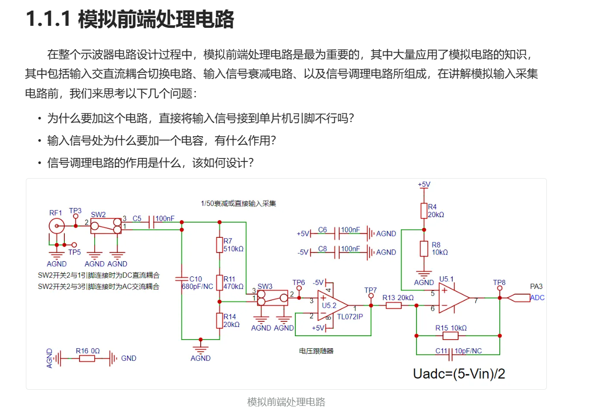 由于该项目为示波器入门项目,在电路设计上选择了一些核心电路,帮助初学者更好的了解示波器的原理和设计方法,主要包括了以下电路: