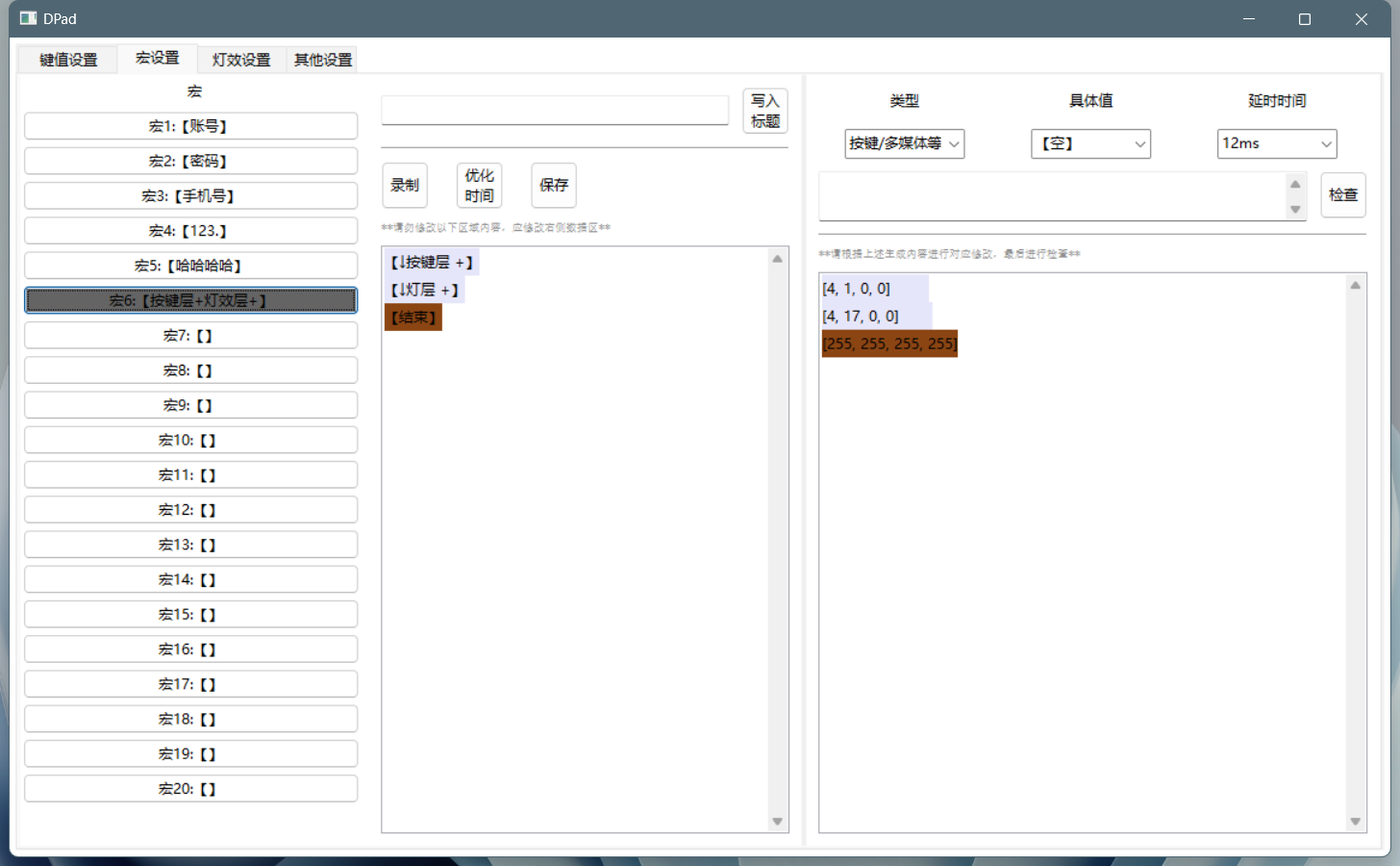 4. 宏高级设置:宏可进行层切换、灯效切换、宏切换,其中宏切换可以扩充宏的上限;