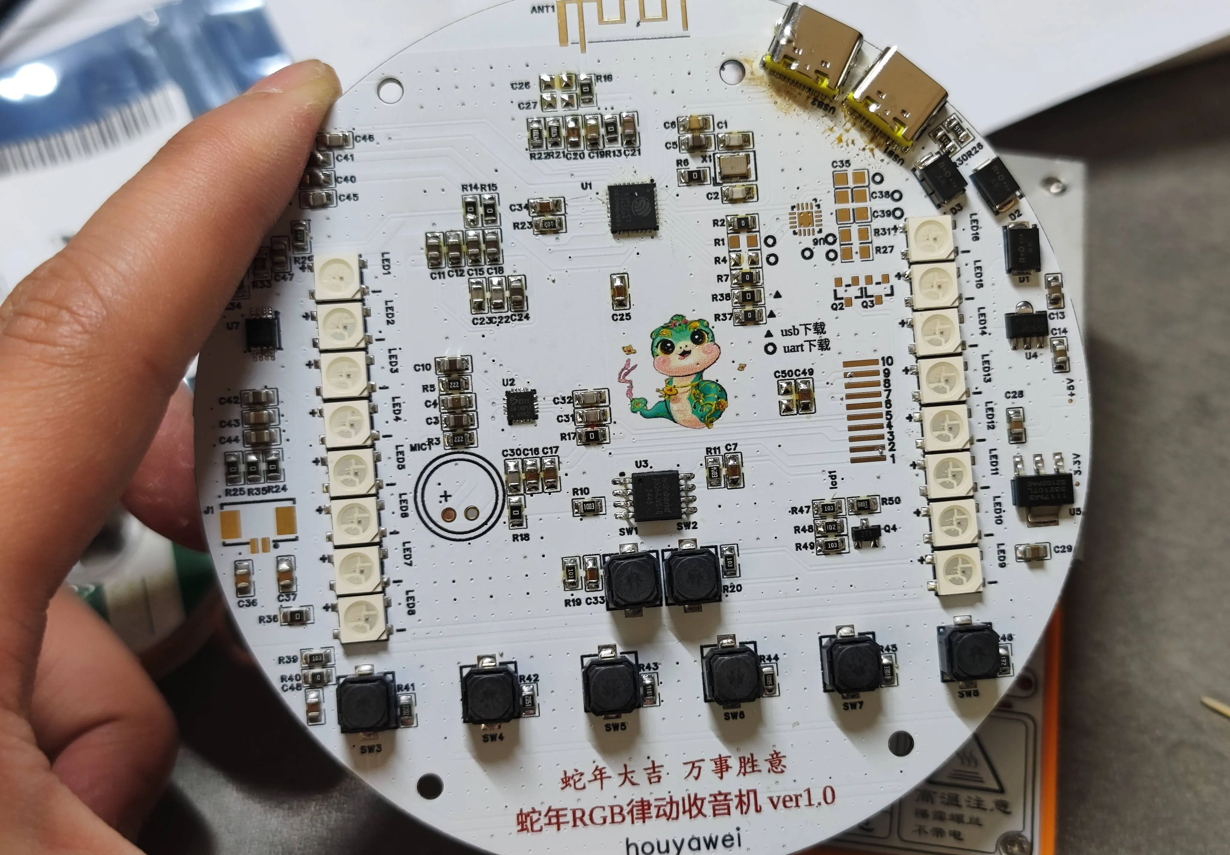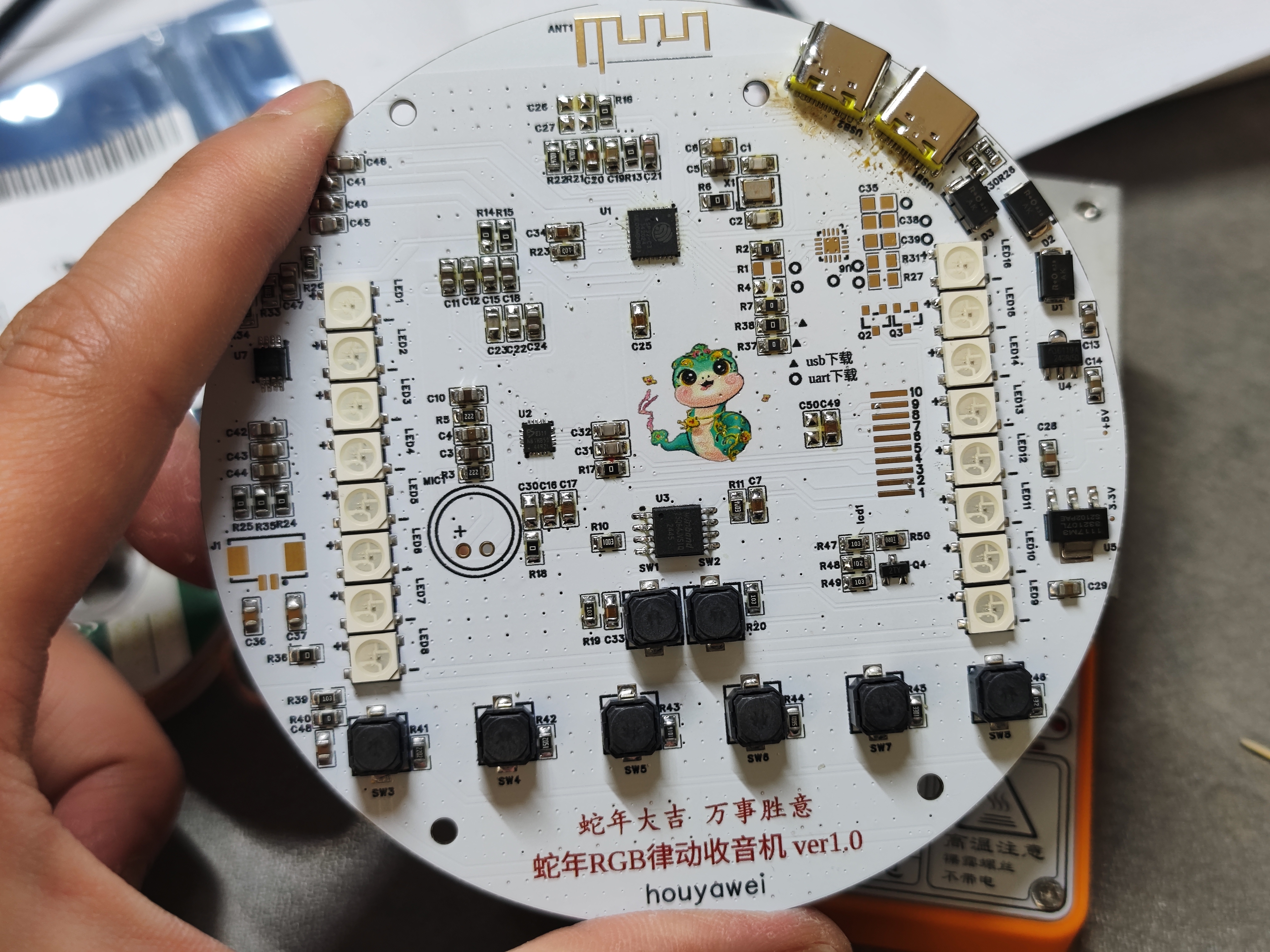简介:蛇年RGB律动收音机,RGB随着收音机播放律动。 支持usb或者串口烧录。 主要是做块板子研究ESP-IDF框架的,学习软件是关键开源协议