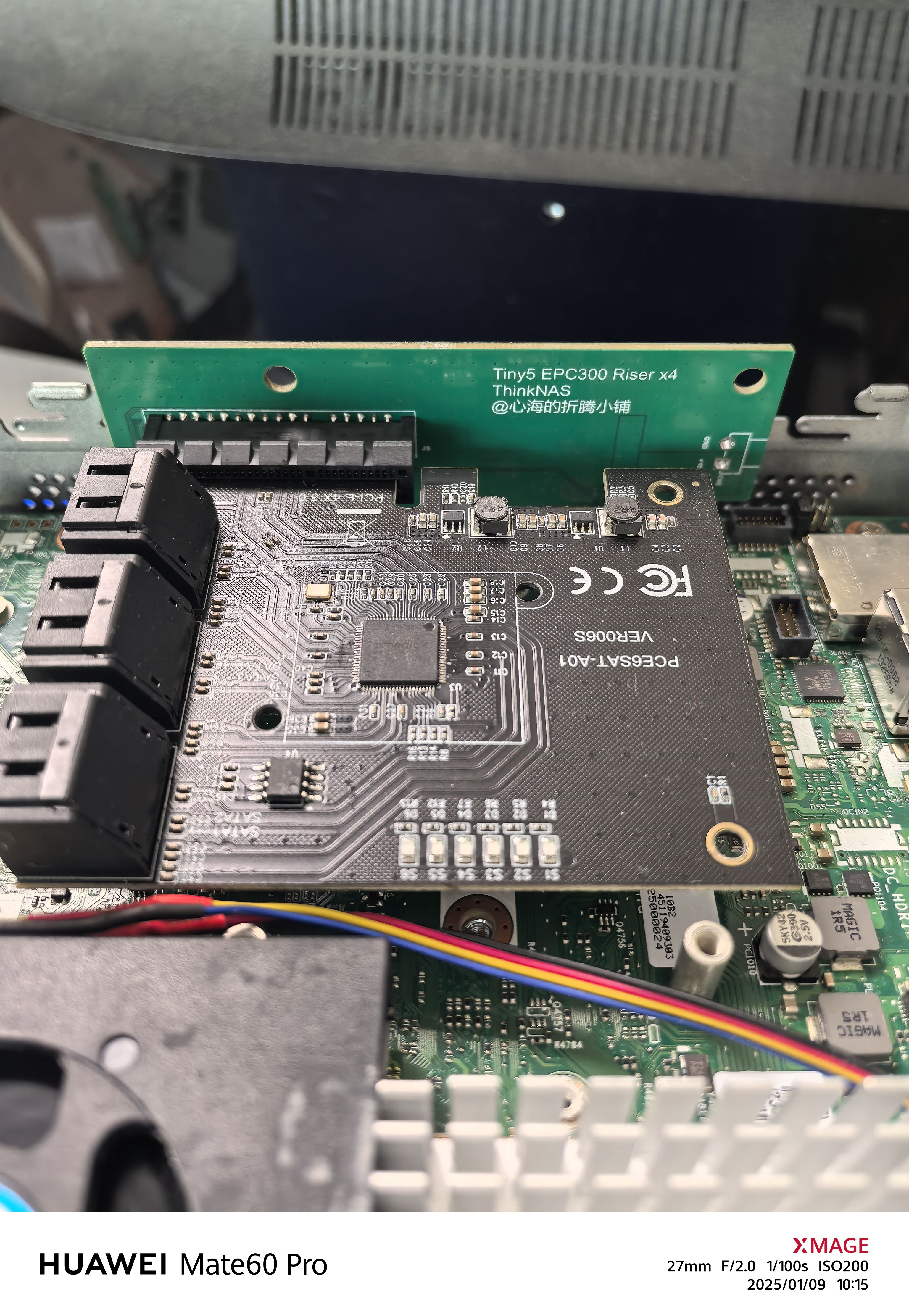 为联想tiny5系列的epc300制作的pcie转接卡 仅仅测试功能性,为本人设计的开源3d打印nas机箱配套 ThinkNAS 未考虑安装到联想1L小主机里面的外形尺寸