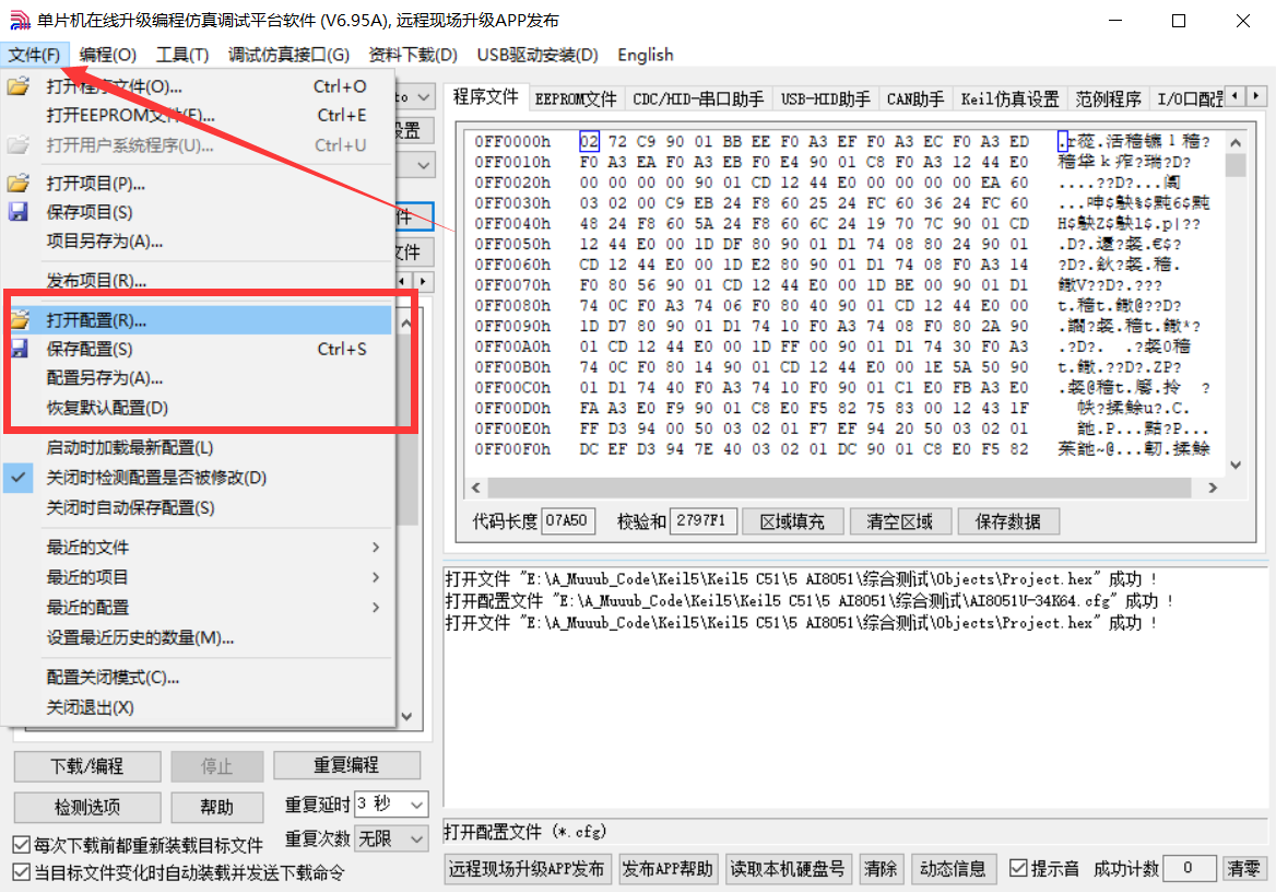 3.新版本AIapp-ISP中增加了"保存配置"的功能,以后下载程序的时候再也不用担心忘记配置编程设置而重新下载了。