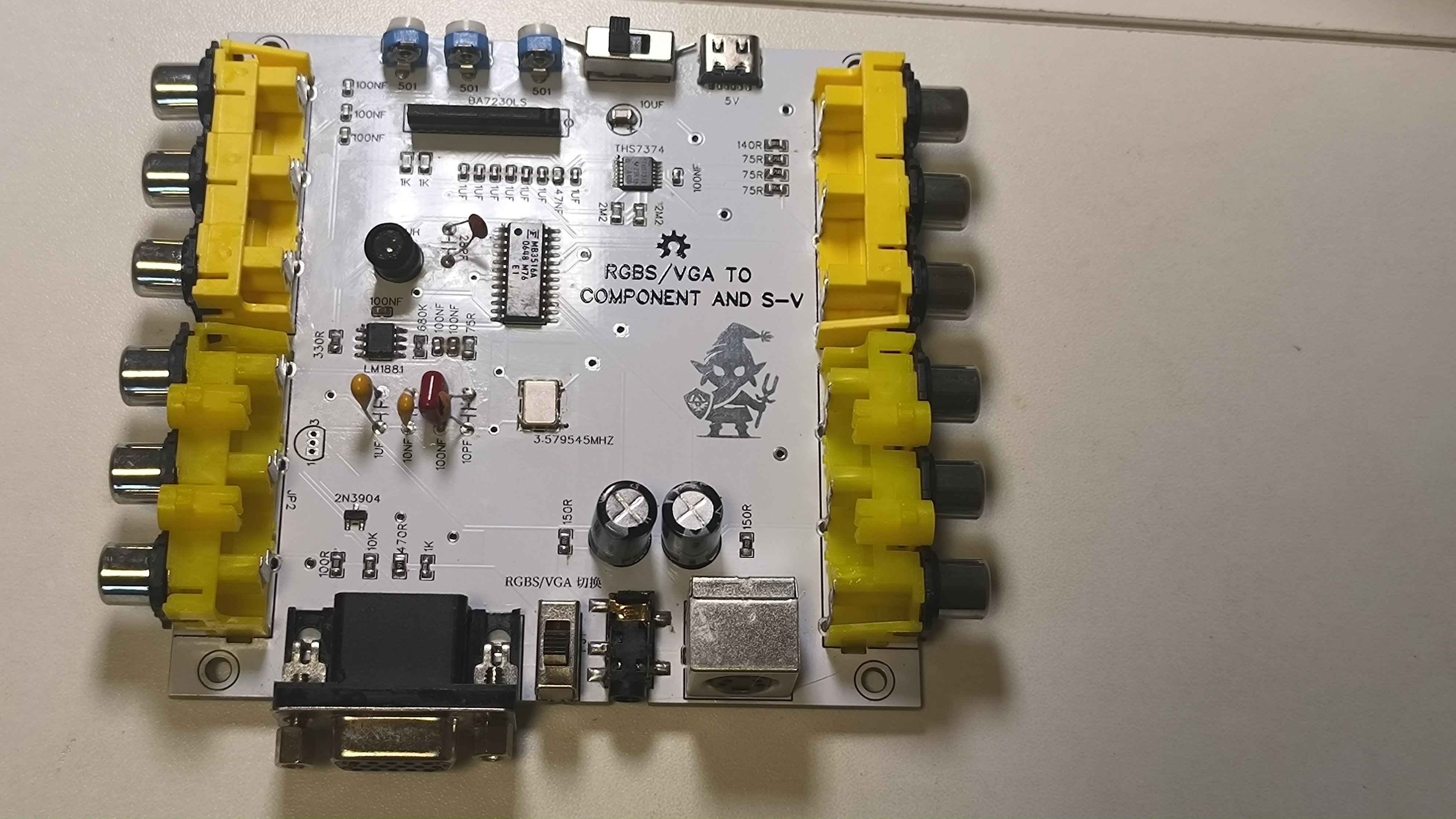 适用于怀旧主机rgbs输出转换成色差和S端子的方案,基于网上的开源资料,支持一进双出(rgbs或者vga进,色差、S端子同时输出) 提供了莲花头输入和scart扫把头输入两种pcb图纸