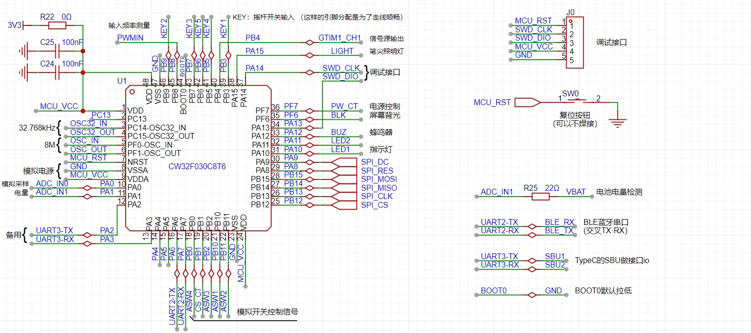 在io的配置方面,优先分配需要使用到专用功能的引脚,比如ADC、SPI、TIMER、串口等,再根据布局布线进行优化调整。