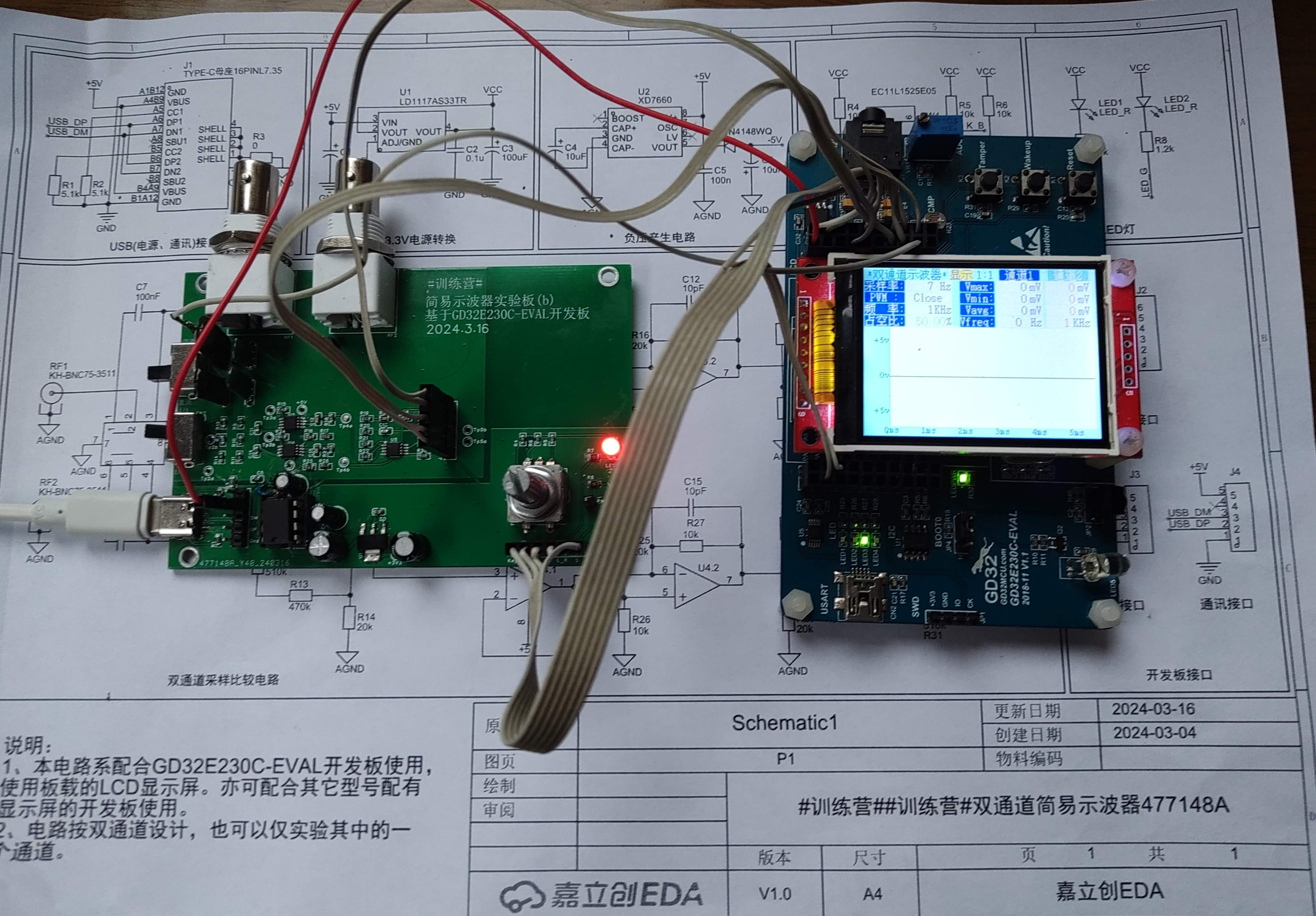 简介:基于GD32E230C-EVAL开发板的简易双通道示波器。开源协议