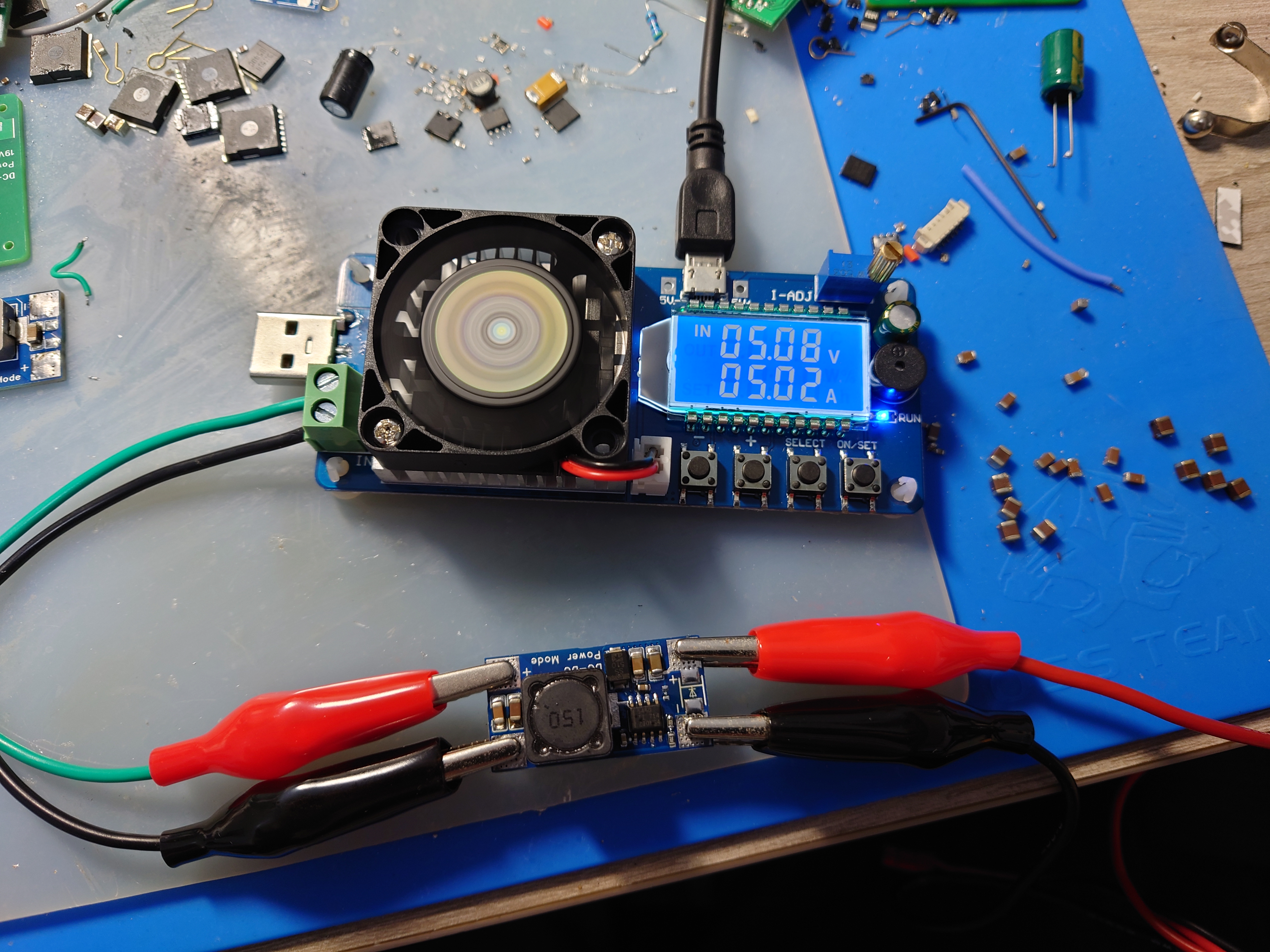 输入24V,输出5.3V 5A测试正常,长期满载工作需加强散热。