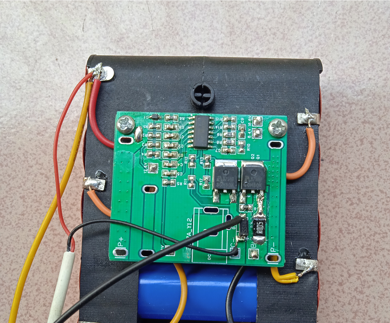 用电动工具自带的充电器充电(22.5V左右)就需要在负极位置串联一个肖特基SS14或者SS34(实物抄来的)增加一些压降。