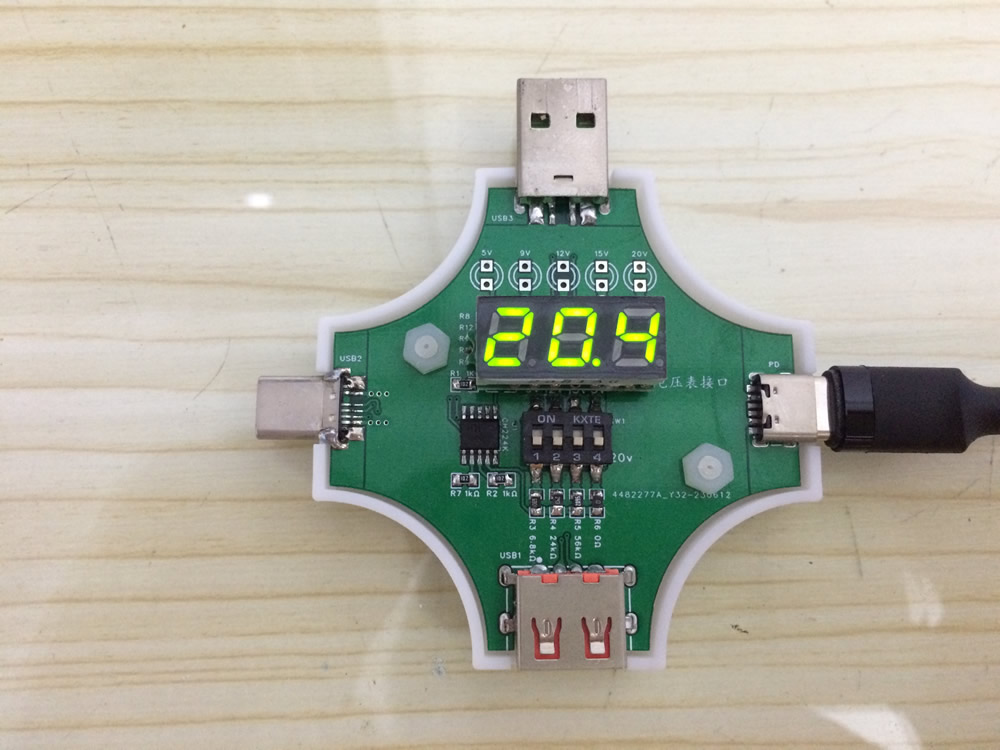 拨码开关有四档,第一档是9V,只拨这一档就是诱骗9V输出,第二档12V,第三档15,第四档是5V。