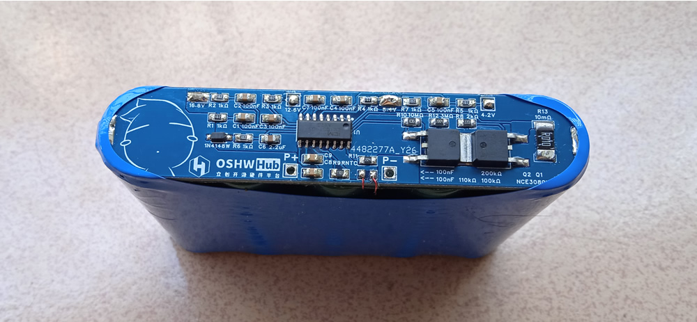 哪怕保护板背面没有焊接元件,电池与保护板之间【必需】放置绝缘材料,比如常用的青稞纸。