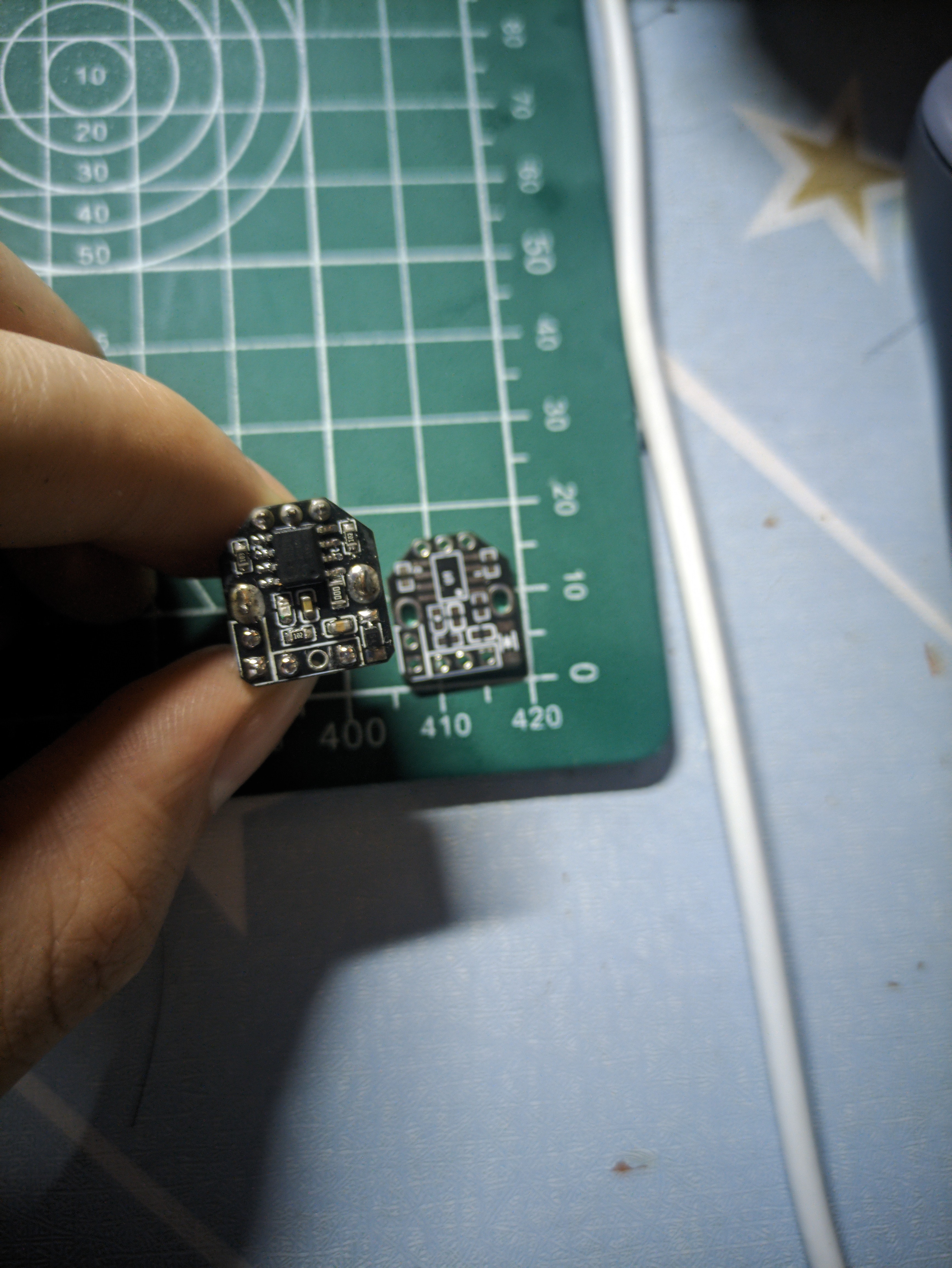 这个项目也是为风扇配套的模块,但后来时间赶不上了就下马了的项目。和之前的电调一样,这个模块也是因为反复刷写无法通过验证。当然这个也是参考了这个开源作者的作品(无刷电调PWM信号发生器),只是做了些体积上的缩减和补上了个指示灯。以下是一些实物展示图。