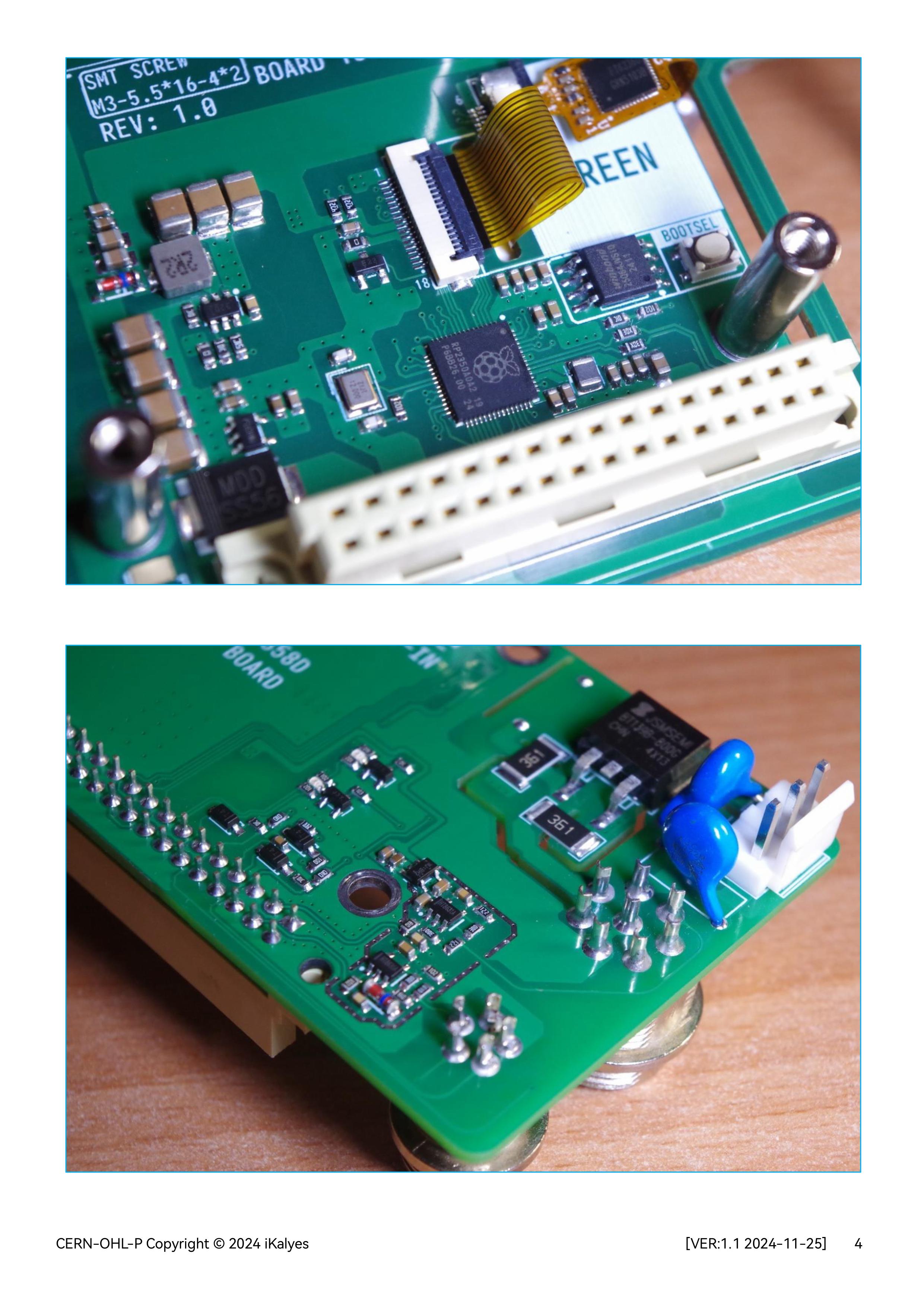 简介:RP2350A&RP2040开发板,集成2.4寸电容触摸屏和旋转编码器,通过板对板连接器引出GPIO以连接扩展板,辅以SMT焊接螺柱固定扩展板。开源协议