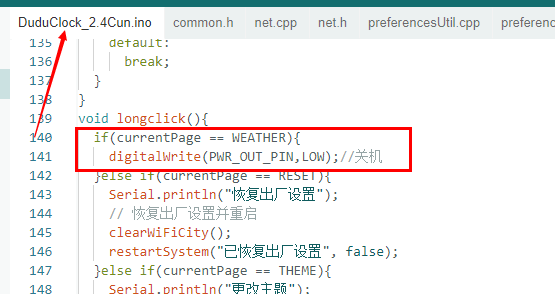 3、在按键事件处理中加入开机功能,当界面处于“时钟界面”时,按键长按3秒后关机