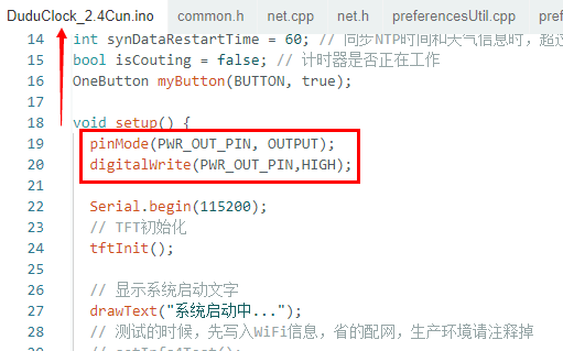 2、在程序运行的开始,控制PWR_OUT输出高电平。修改