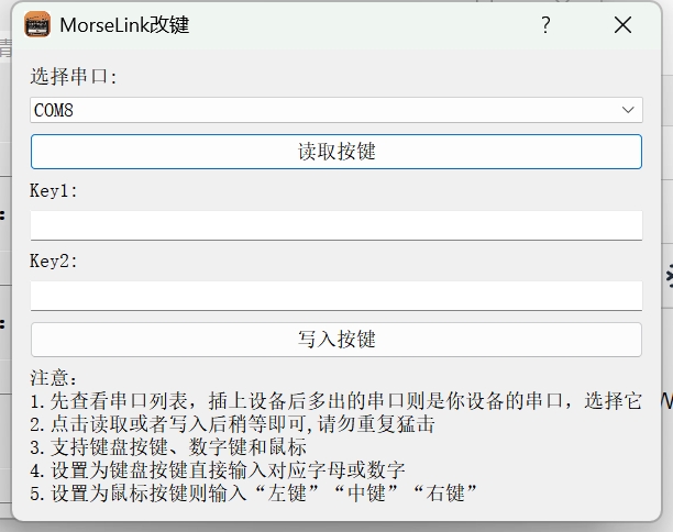 1.烧录好固件后使用下图软件MorseLink程序改键,MorseLink的下载地址