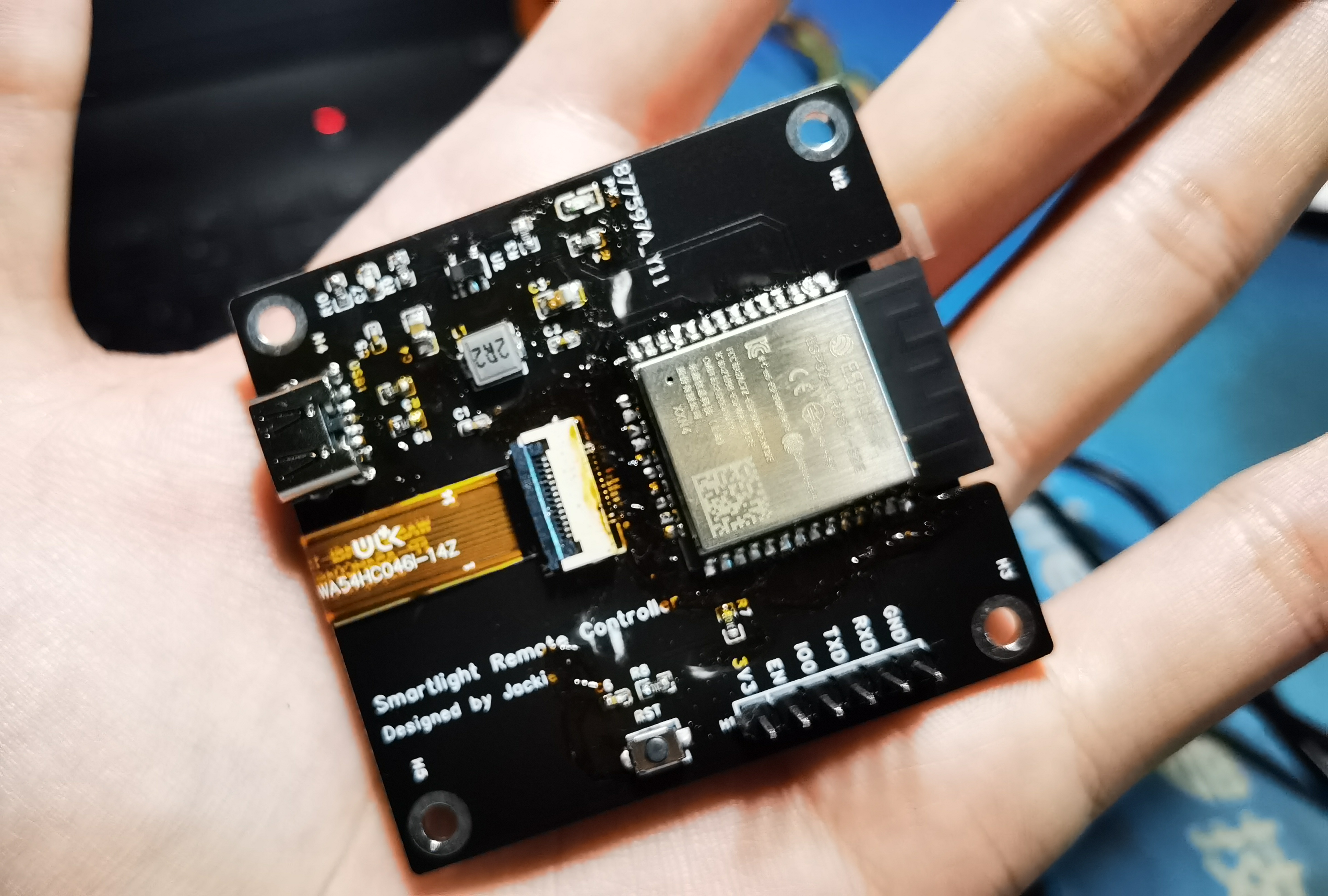 因为这个遥控器要使用WiFi与LED的控制端进行通信,所以肯定选择ESP32作为主控,我选择的是ESP32-WROOM-32E模块,这个模块用的是ESP32的最新内核,比初代的内核更稳定;模块使用板载天线,所以在PCB的对应区域有挖空,防止干扰信号。