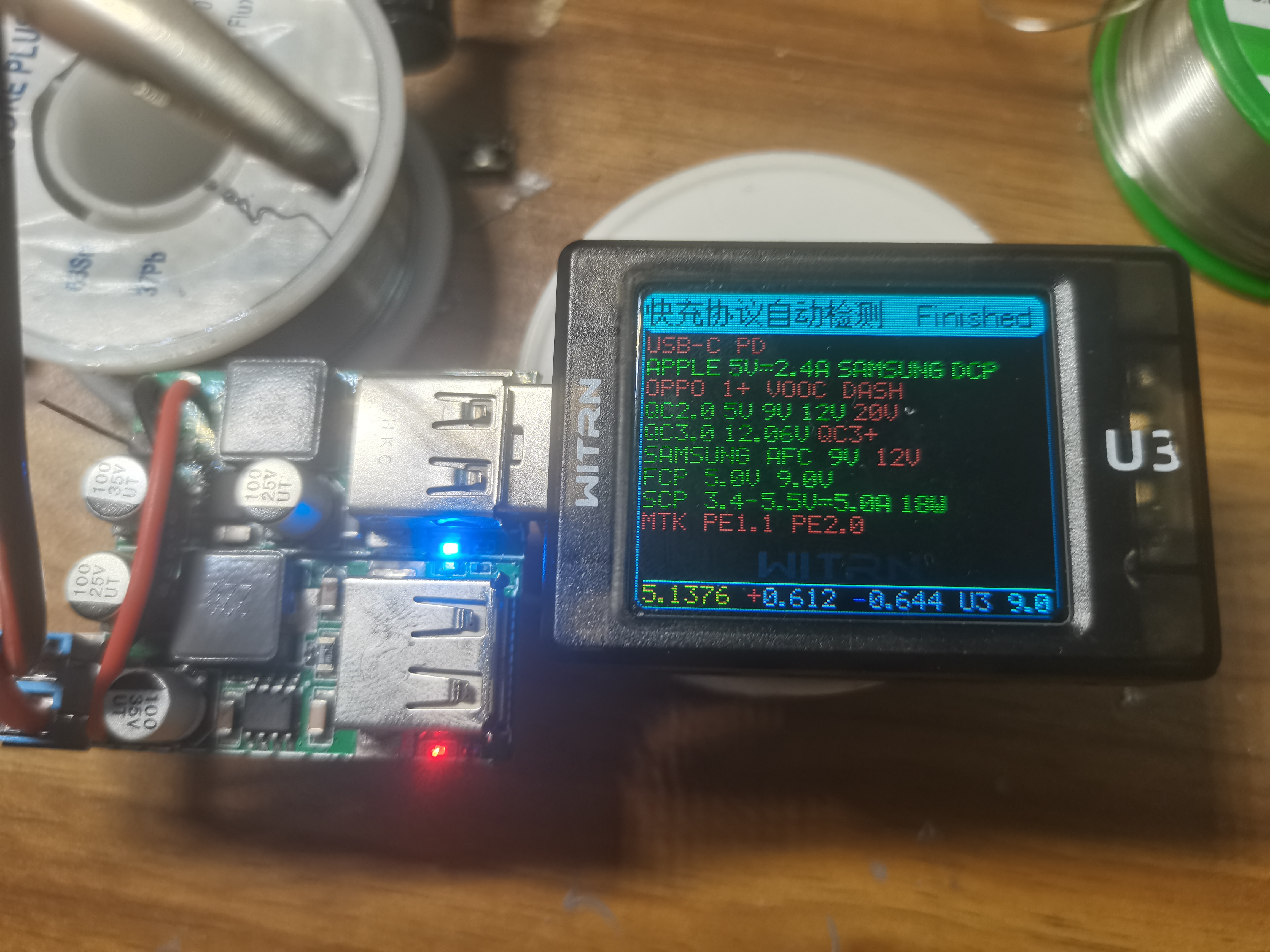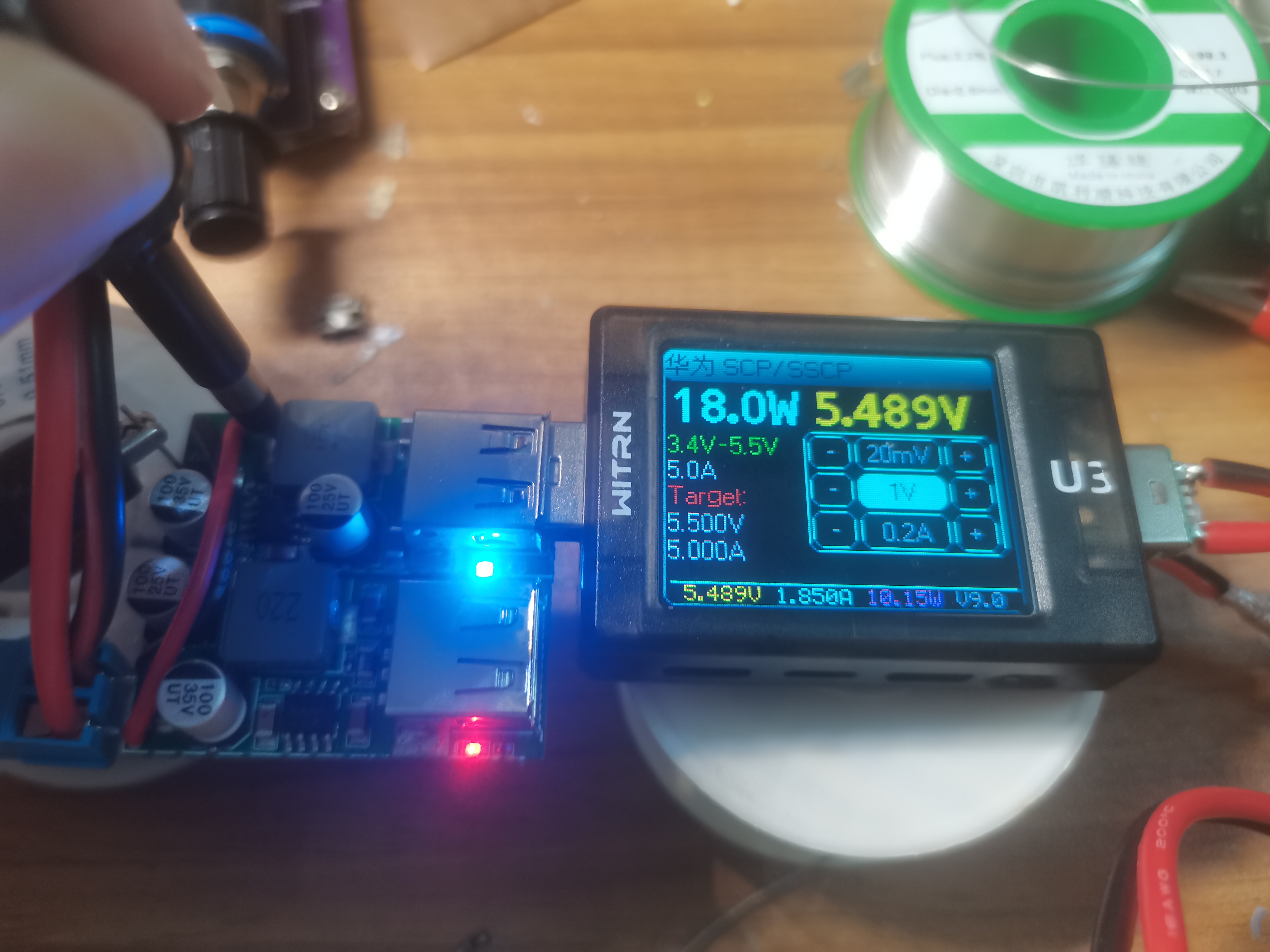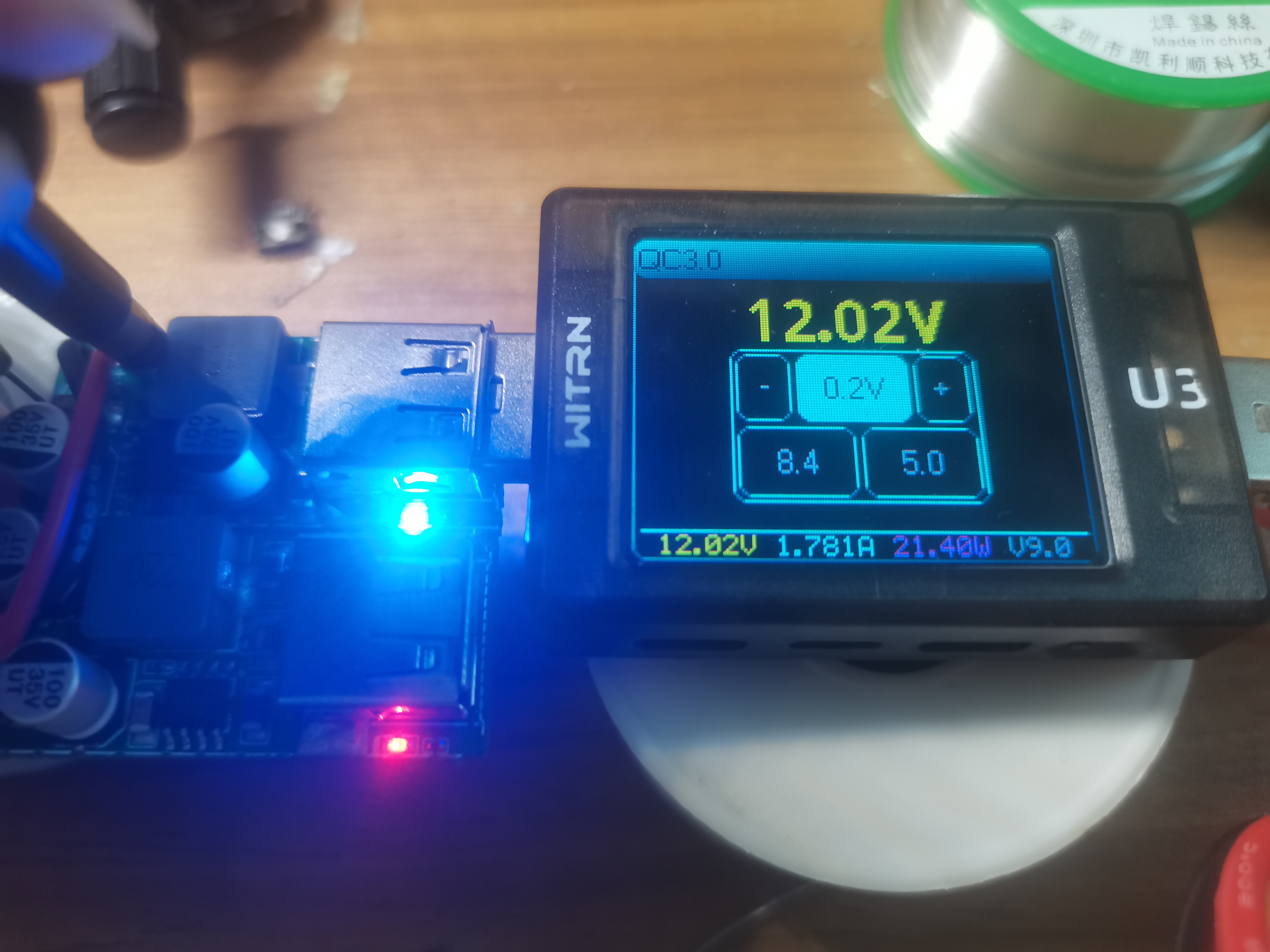 SW3521有两颗LED,一颗与IP6505相同为电源指示,一颗为快充指示,非5V电压下亮起