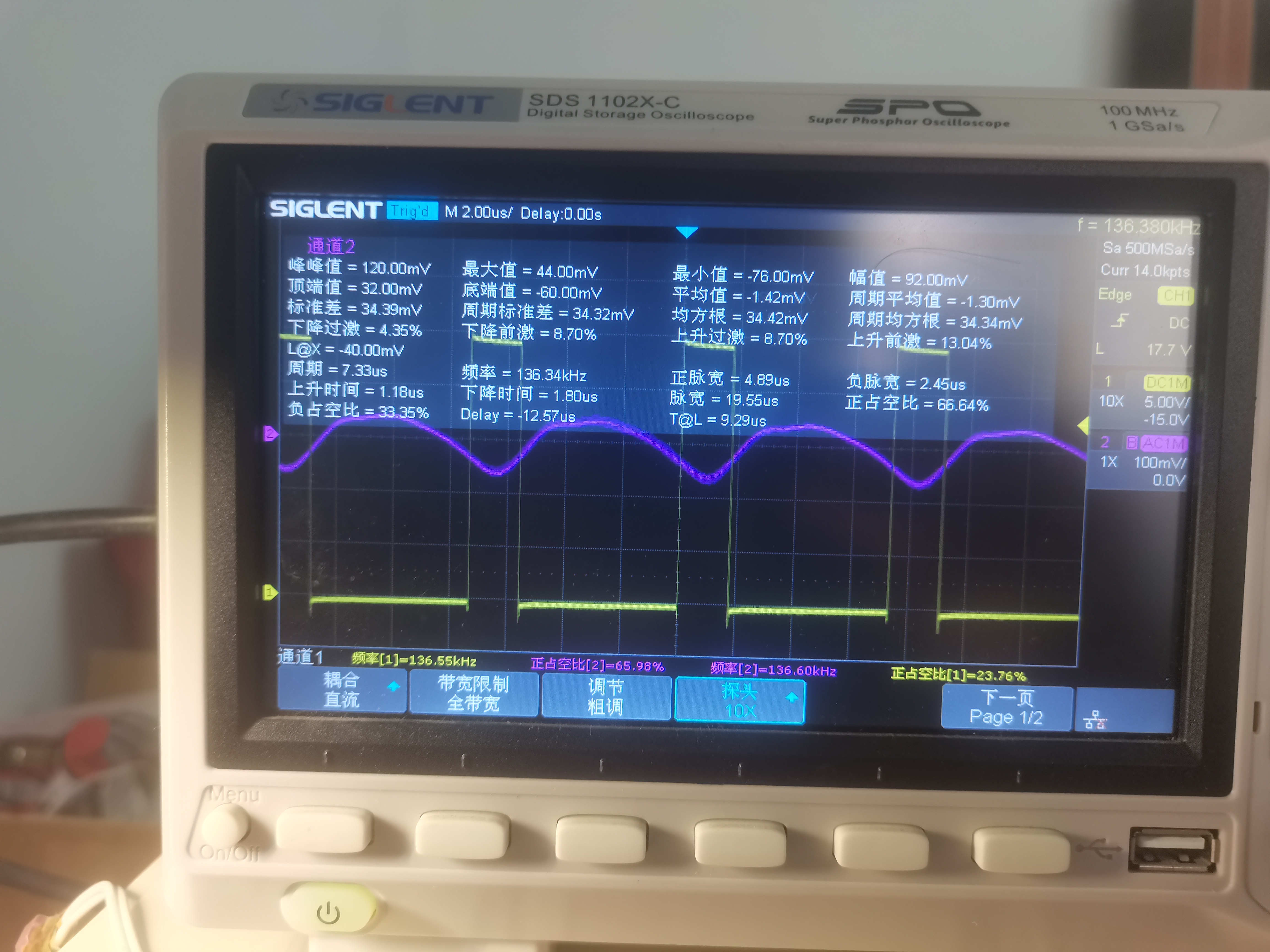 (惨不忍睹,怀疑是布线问题,故在C2上并联一颗电容)