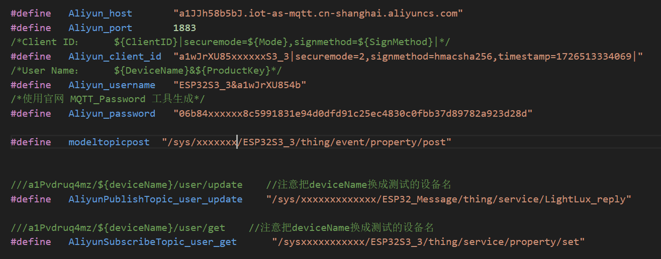 注意发布消息时,我们本地的变量表示名必须与阿里云上设置的一致,这样才能保证阿里云能够识别我们发布的信息。至于订阅主题,