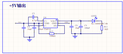 ESP32S3开发板带有 3.3V LDO,考虑到锂电池不稳定,因此在电路中设计5V升压稳压电路稳定电压,保持设备运行稳定;本次升压芯片选用了芯鼎盛X4310,此芯片在输入2.7~5V时会固定输出5V,