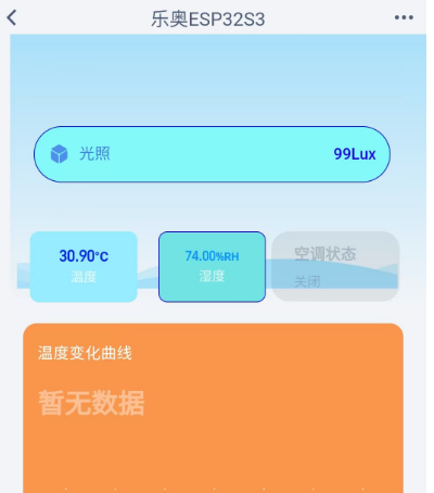 本项目使用嘉立ESP32 S3开发板完成设计与制作,目前已经实现实现WiFi联网,空调远程开关控制,温湿度监测及上传,时间显示以及云智能APP界面显示与控制功能。
