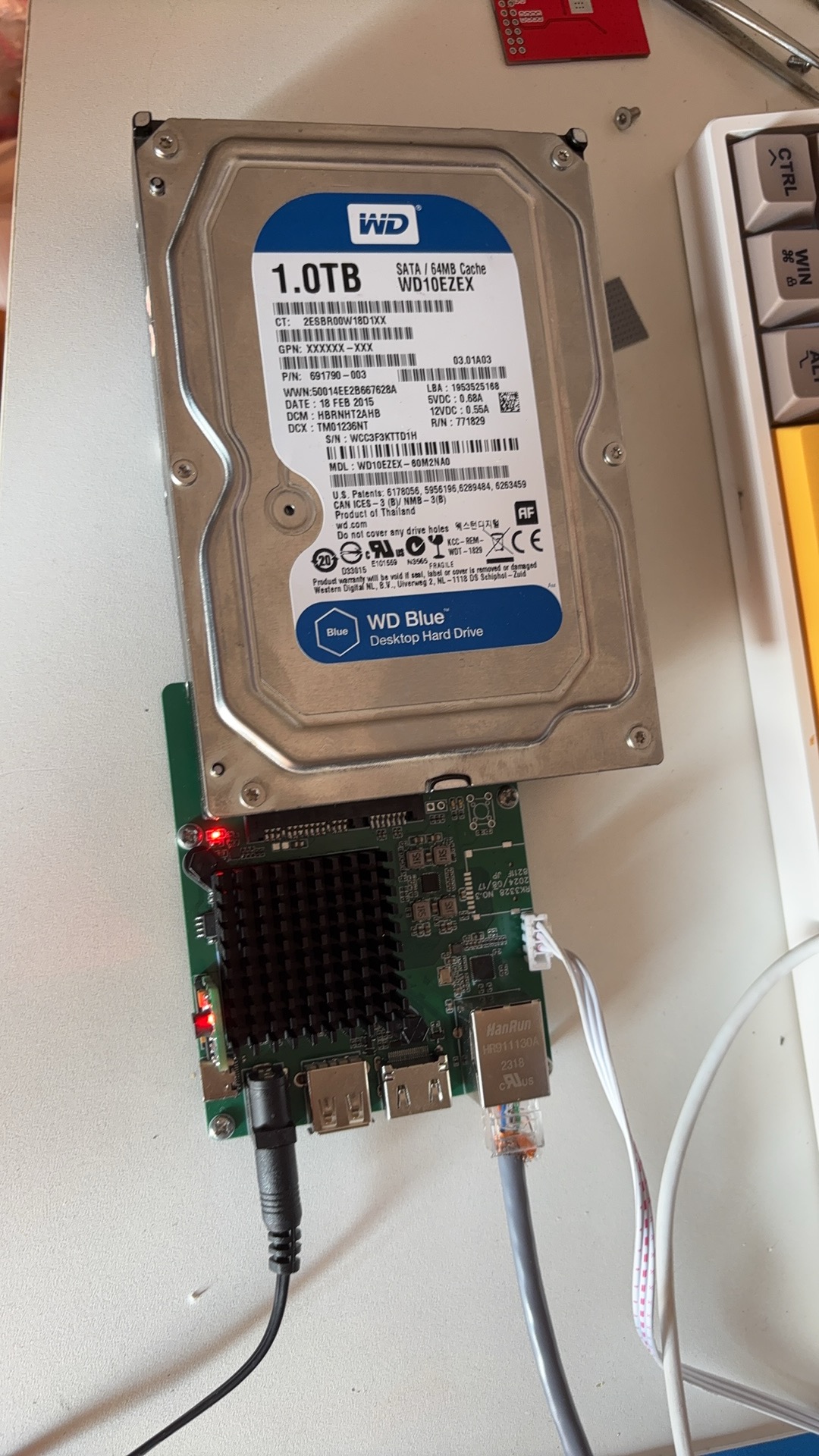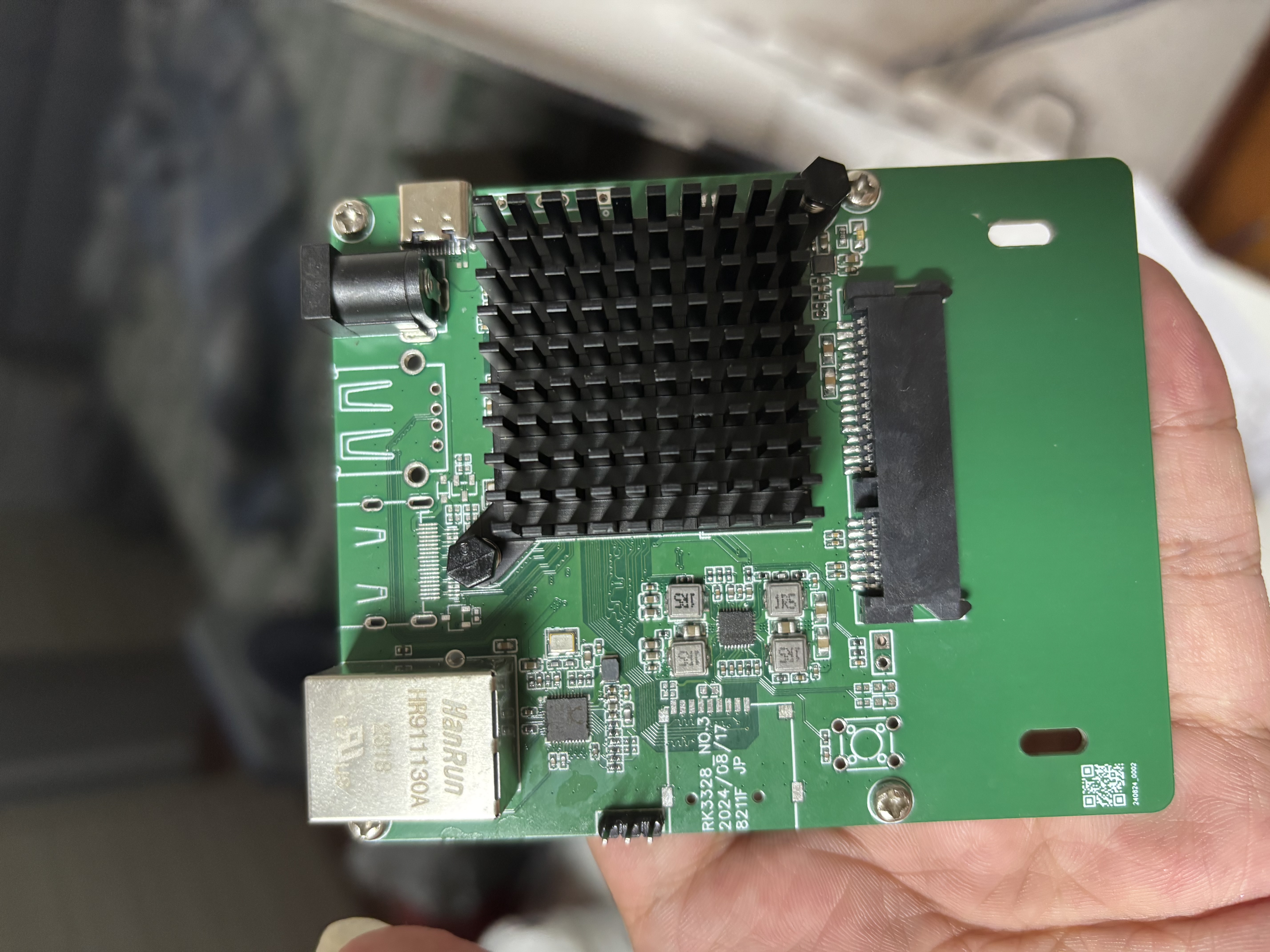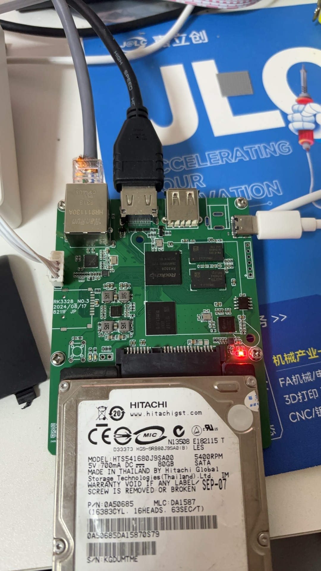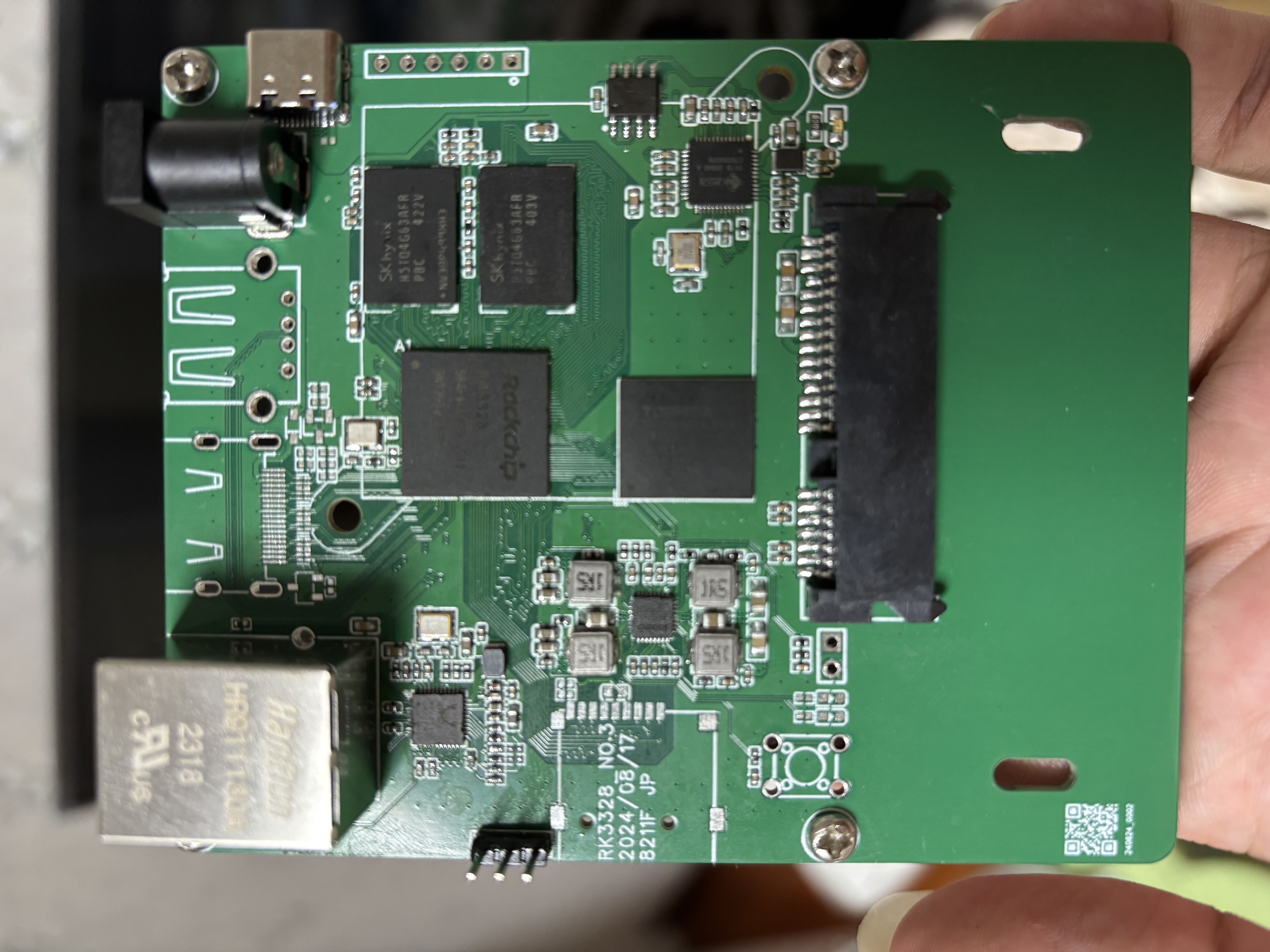 基于rk3328的一块板子,一路USB3.0转成了SATA3.0,带一路千兆以太网,没有预留wifi,LPDDR3换成了标压DDR3