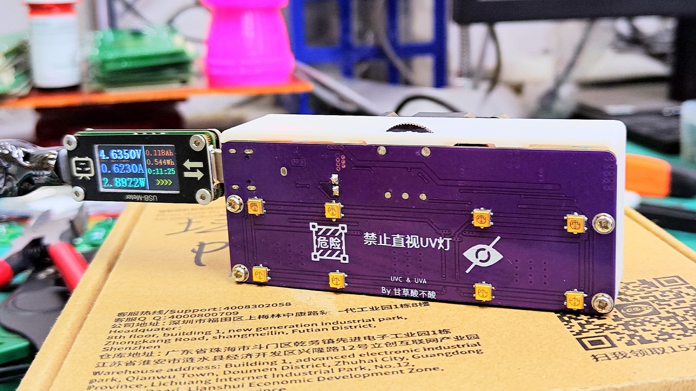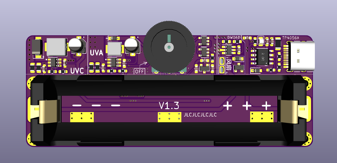 双波段UV灯恒流调光电路,板载18650电池座,集成充放电过流保护,4056充电,极其先进的TYPEC接口,3D打印外壳