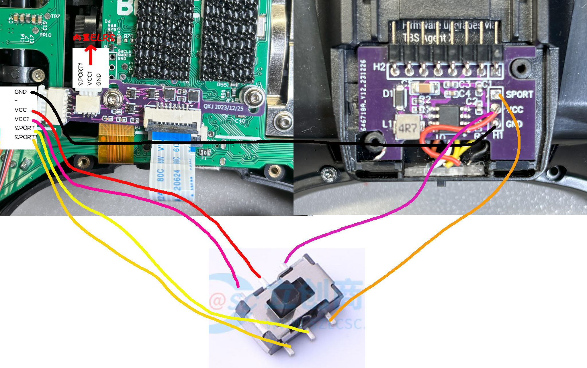 相比较之前的转接板,只是增加了一个sh1.0 6p端子(没有用FPC排线,不容易弯折),把vcc和s.port引出到一个拨动开关,用于切换电源和信号,然后外置高频头的PCB也做了相应改造。