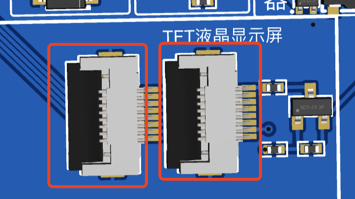 2、显示屏插座:市面上常见的0.96寸显示屏有两种长度的排线,所以根据实际购买的长度,选择焊接FPC连接器焊接的位置。