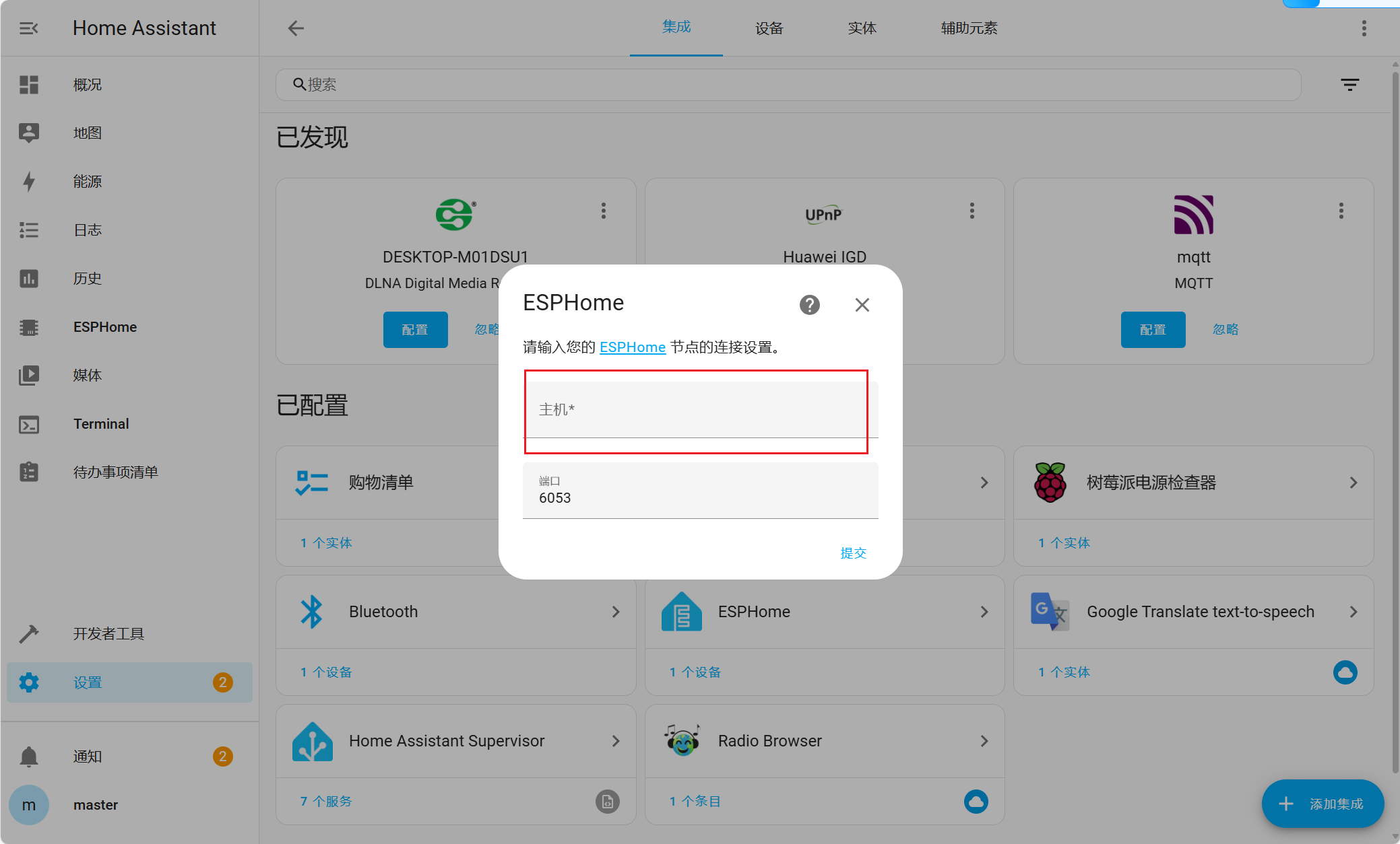 使用的是树莓派作为HA的中枢。